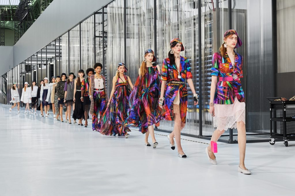 Mở màn show diễn là hai người mẫu ăn vận như những chú rorot ngoài hành tinh. Tiếp nối sau đó là bức tranh sôi động của thế giới công nghệ mà ở đó Karl đã biến hoá, thêm thắt rất nhiều chi tiết mới, hiện đại hơn, trẻ trung hơn mặc dù tinh thần của bộ sưu tập vẫn xoay quanh chất liệu tweed kinh điển, thiết kế áo khoác little jacket hay nụ hoa trà – biểu tượng của Coco Chanel. Những chi tiết mới mẻ đó phải kể đến việc phối màu đa dạng trên nền chất liệu lụa plastic, giày đế bằng, mũ bóng chày và kiểu tóc đuôi ngựa. Hơn 80 thiết kế mùa này mang sắc thái tươi vui, đậm chất xuân hè với bảng màu phong phú với những sắc neon rực rỡ, bắt mắt.