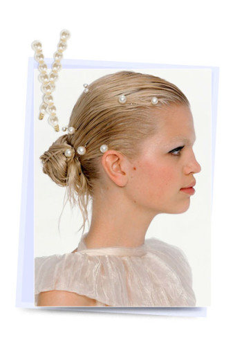 Chanel phát huy truyền thống cổ điển của thương hiệu là sử dụng ngọc trai, nhưng lần này là trên tóc. Những chiếc kẹp tăm đính ngọc trai điểm xuyết trên tóc đã đủ để bạn không cần phải diện thêm trang sức rườm rà.