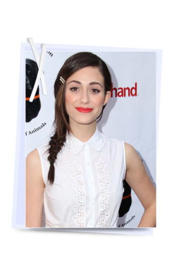 Bạn đang khó chịu với phần tóc mái ngang chưa chịu dài. Tết tóc một bên và vén mái bằng những chiếc kẹp tăm to bản màu trắng như nữ diễn viên Emmy Rossum là kiểu tóc đơn giản thích hợp cho tiết trời nóng nực ngày hè.