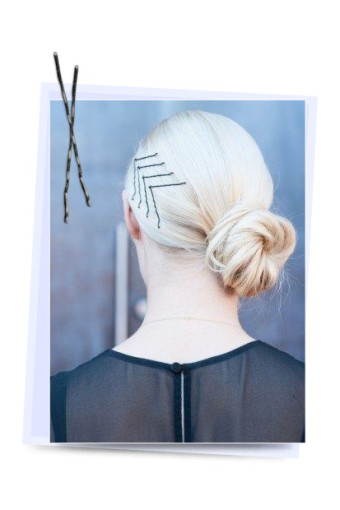 Quy tắc dùng kẹp tăm hợp màu với mái tóc đã không còn hợp thời. Những chiếc kẹp tăm có màu sắc tương phản với màu tóc được cài theo hình xương cá sẽ giúp kiểu tóc búi đơn giản trông nổi bật hơn.