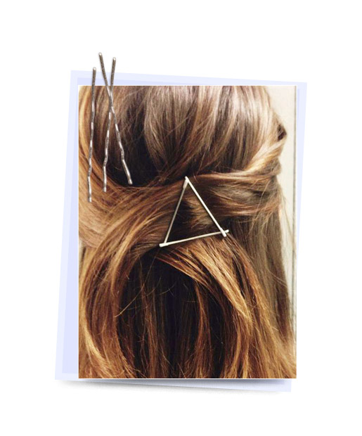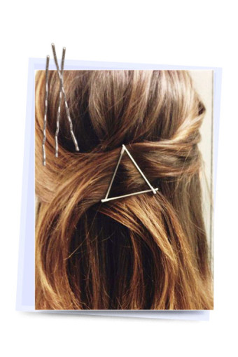 Kiểu vén tóc hai bên ra sau giữa đầu không có gì mới. Nhưng thay vì dùng buộc tóc bạn có thể cố định bằng 3 chiếc kẹp tăm theo kiểu hình học như ảnh, vừa giúp kẹp bám chắc hơn trên tóc vừa có ngay kiểu tóc độc đáo. Đừng quên xịt một ít keo để giữ kiểu tóc được lâu hơn nhé.