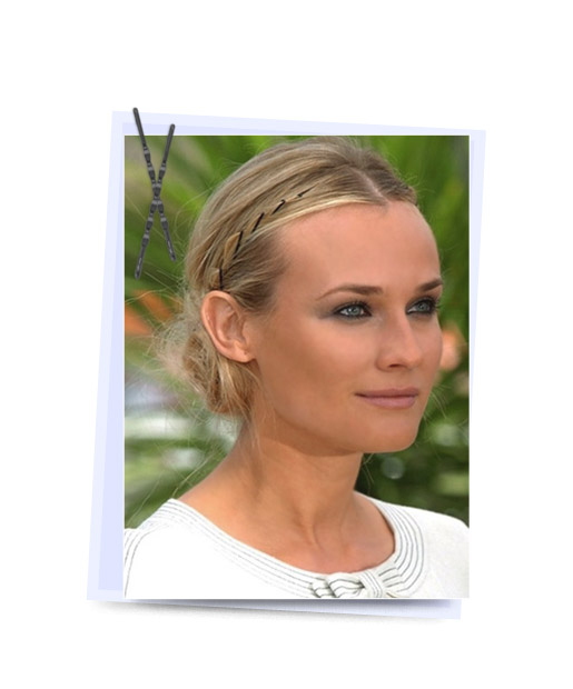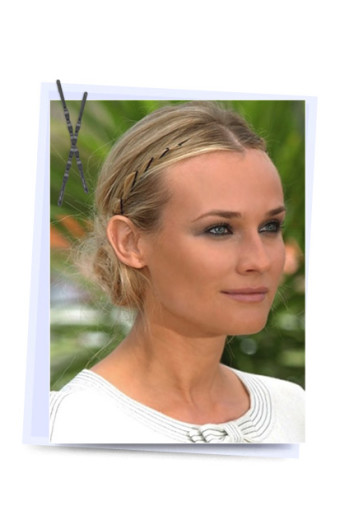 Diane Kruger luôn dẫn đầu trong các xu hướng thời trang và làm đẹp. Hãy nhìn cách cô kẹp những chiếc kẹp tăm chéo, ôm theo mái tóc trông như một băng cài đầu cũng khiến các tín đồ thời trang ngưỡng mộ. Kiểu tóc này sẽ đẹp hơn nếu bạn búi tóc thấp sau gáy và đánh rối nhẹ.