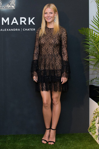 Trong khi đó tại Hồng Kông, nữ diễn viên Gwyneth Paltrow trở lại thảm đỏ trong chiếc đầm ngắn bằng ren đen của Michael Kors.