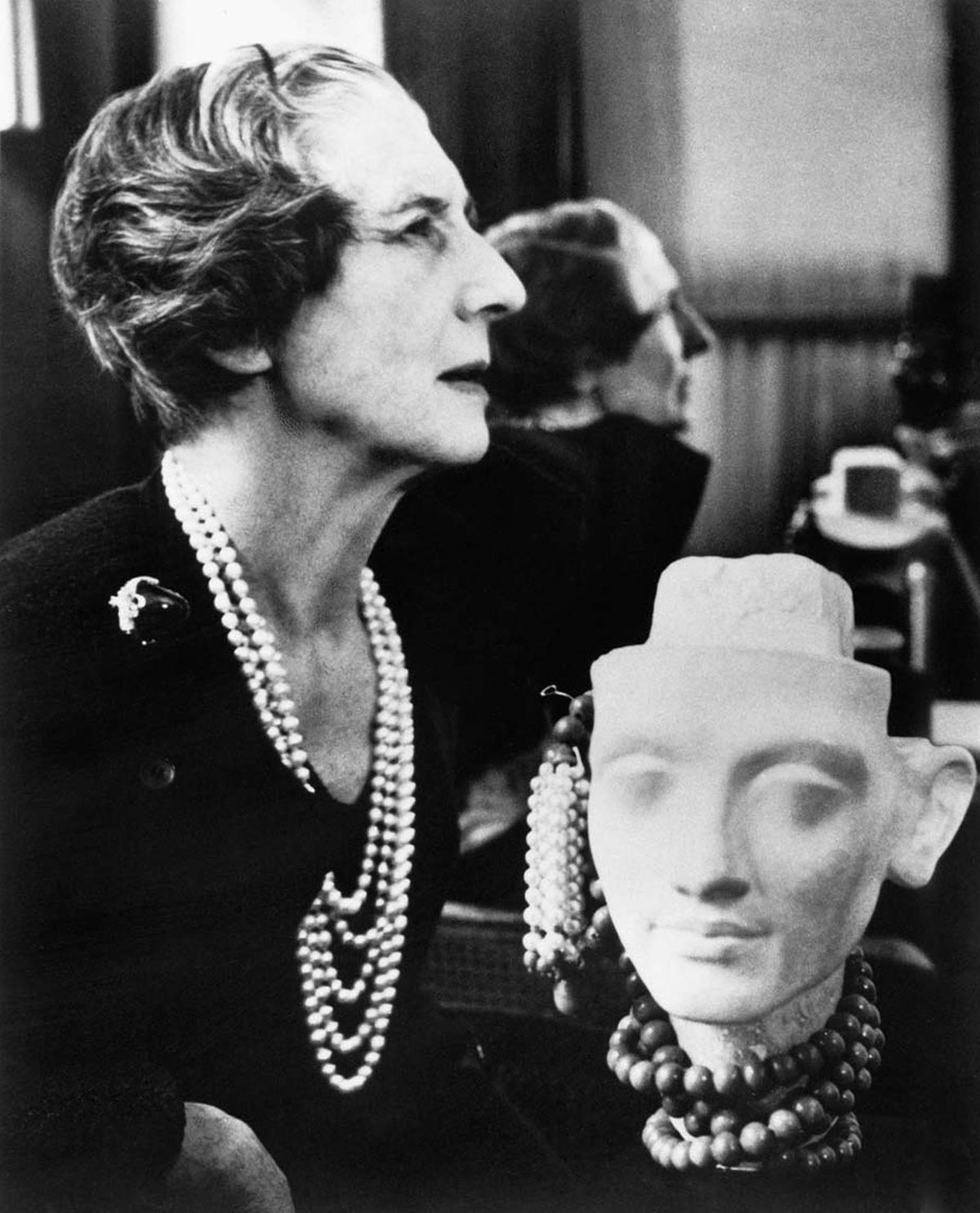 Trái: Trâm cài áo được thiết kế riêng năm 1948. Điểm nhấn là viên ngọc lục bảo cắt tròn cabochon.