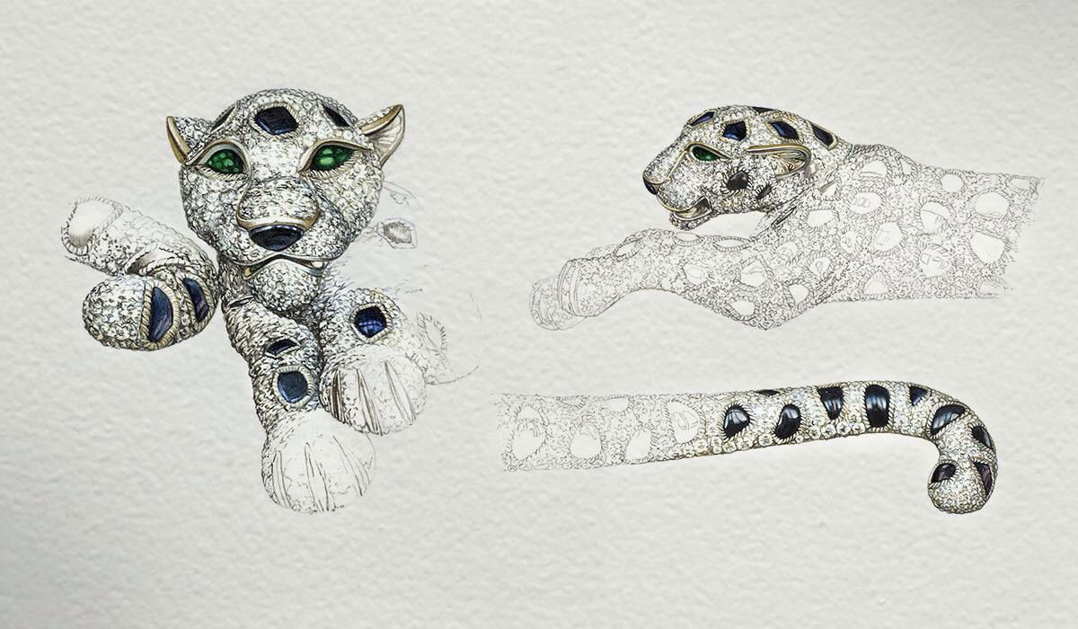 Đầu tiên là vẽ phác thảo bằng chì. Sau đó tô màu tay bằng màu bột. Rồi đưa vào kho lưu trữ đặt tại cửa hàng chính ở Paris. Mẫu thiết kế được gửi đến tay ban kiểm duyệt mẫu vẽ bao gồm giám đốc hình ảnh Rainero, giám đốc xưởng sáng tạo Jacqueline và chủ tịch – giám đốc điều hành tập đoàn Cartier quốc tế Benard Fornas.