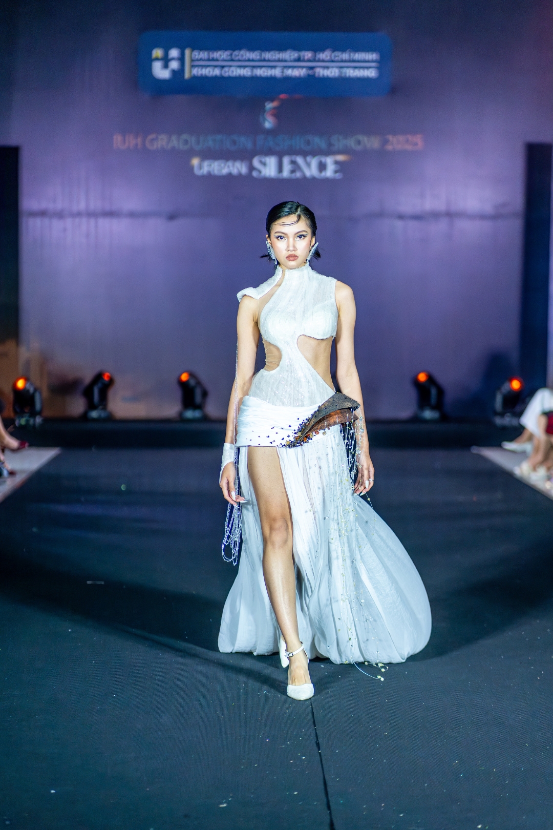 Urban Silence – Sự tĩnh lặng của thành phố, không phải là sự im lặng, mà là không gian để những tiếng nói sáng tạo được lắng nghe trọn vẹn. 20 bộ sưu tập xuất sắc nhất được trình diễn đã phác họa một bức tranh toàn cảnh về tư duy thời trang của sinh viên ngành Thiết kế Thời trang trường Đại học Công nghiệp TP.HCM (IUH): trưởng thành, sâu sắc và đầy trách nhiệm.