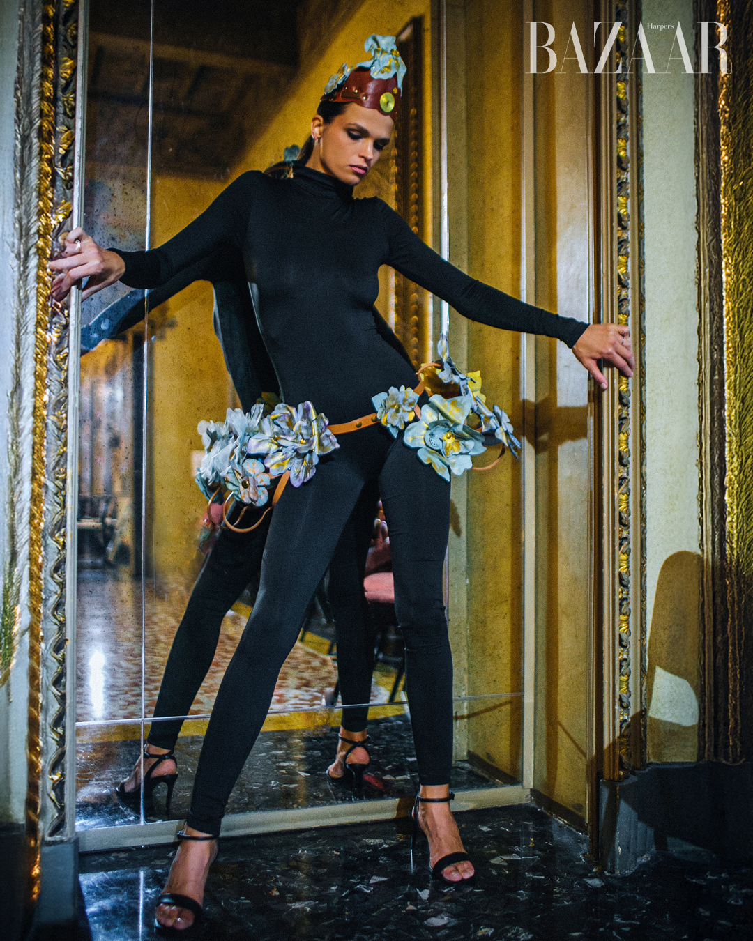 In Colors draws inspiration from the artist’s childhood memories of her family villa, a place where nature became a playground for imagination. Flowers, plants, and organic forms are translated into accessories that recall the innocence of toys, expressed through simple shapes, vibrant colours, and ethereal structures. Light leather constructions appear almost drawn in the air, suggesting movement and freedom while maintaining a precise and intentional form.