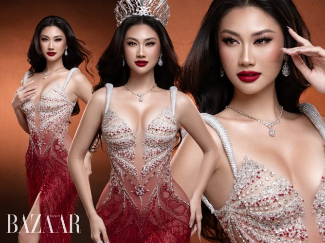 Đầm dạ hội Bán kết Miss Cosmo 2025 phản chiếu hành trình trưởng thành của Phương Linh
