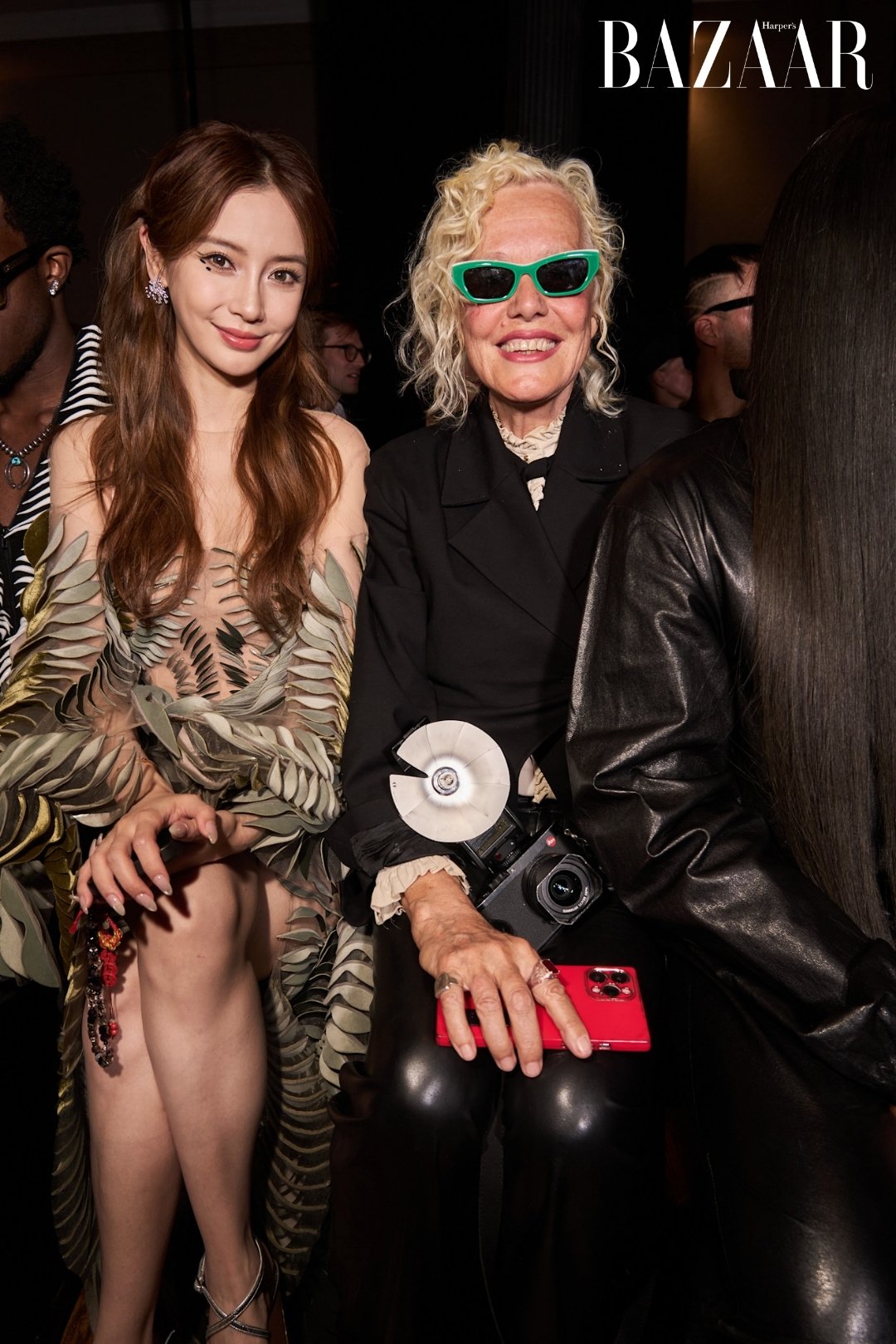 Không chỉ chiếm spotlight trên thảm đỏ, Angelababy còn khiến cộng đồng mạng xôn xao với những khoảnh khắc tại buổi trình diễn Iris Van Herpen. Ngồi cạnh hai khách mời quốc tế, cô liên tục trò chuyện bằng phong thái cởi mở. Khi được fan gọi tên, Angelababy vui vẻ đáp lại, còn nở nụ cười vẫy tay chào tạm biệt, một hành động nhỏ nhưng đủ khiến người hâm mộ cảm động.