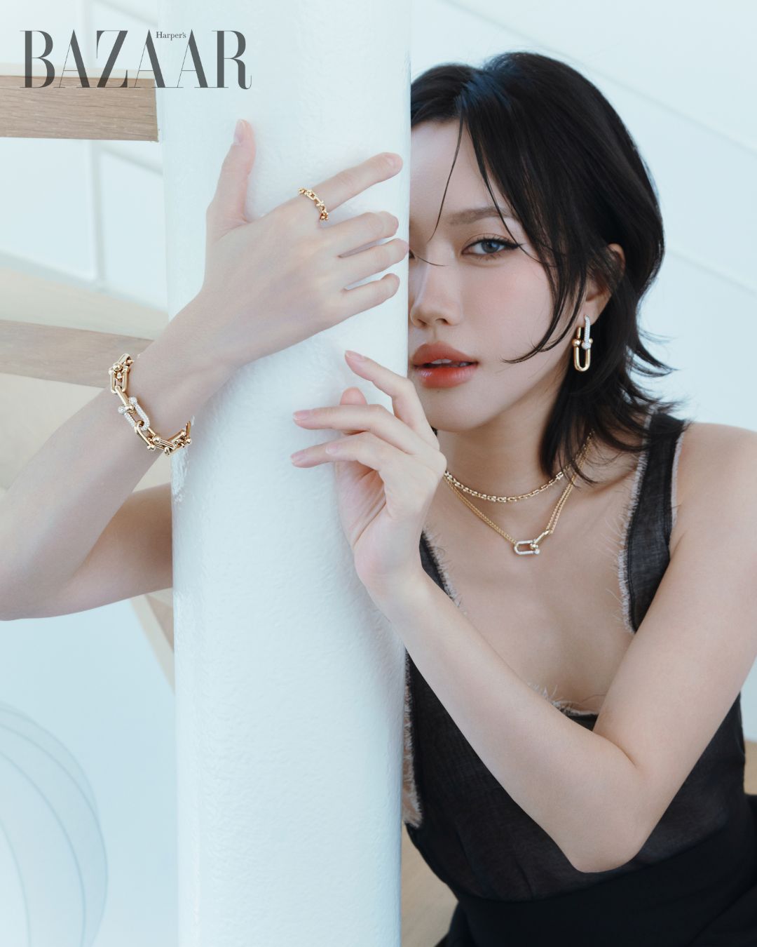 Diệu Nhi, vốn quen thuộc với hình ảnh trẻ trung, hài hước, lần này xuất hiện cùng bộ sưu tập HardWear by Tiffany với một khí chất trầm lắng, sắc sảo và đầy nội lực. Không còn những biểu cảm dí dỏm quen thuộc, cô lựa chọn cách kể chuyện bằng ánh mắt.