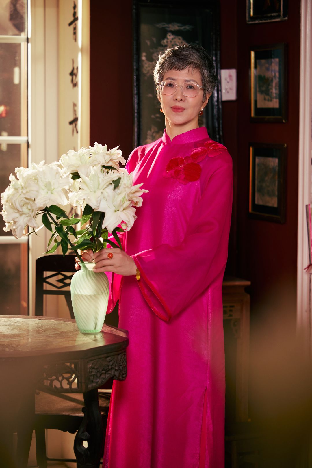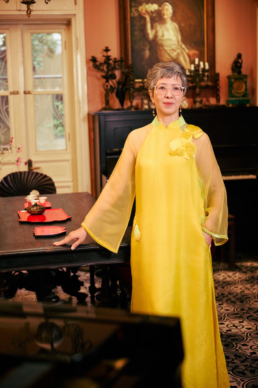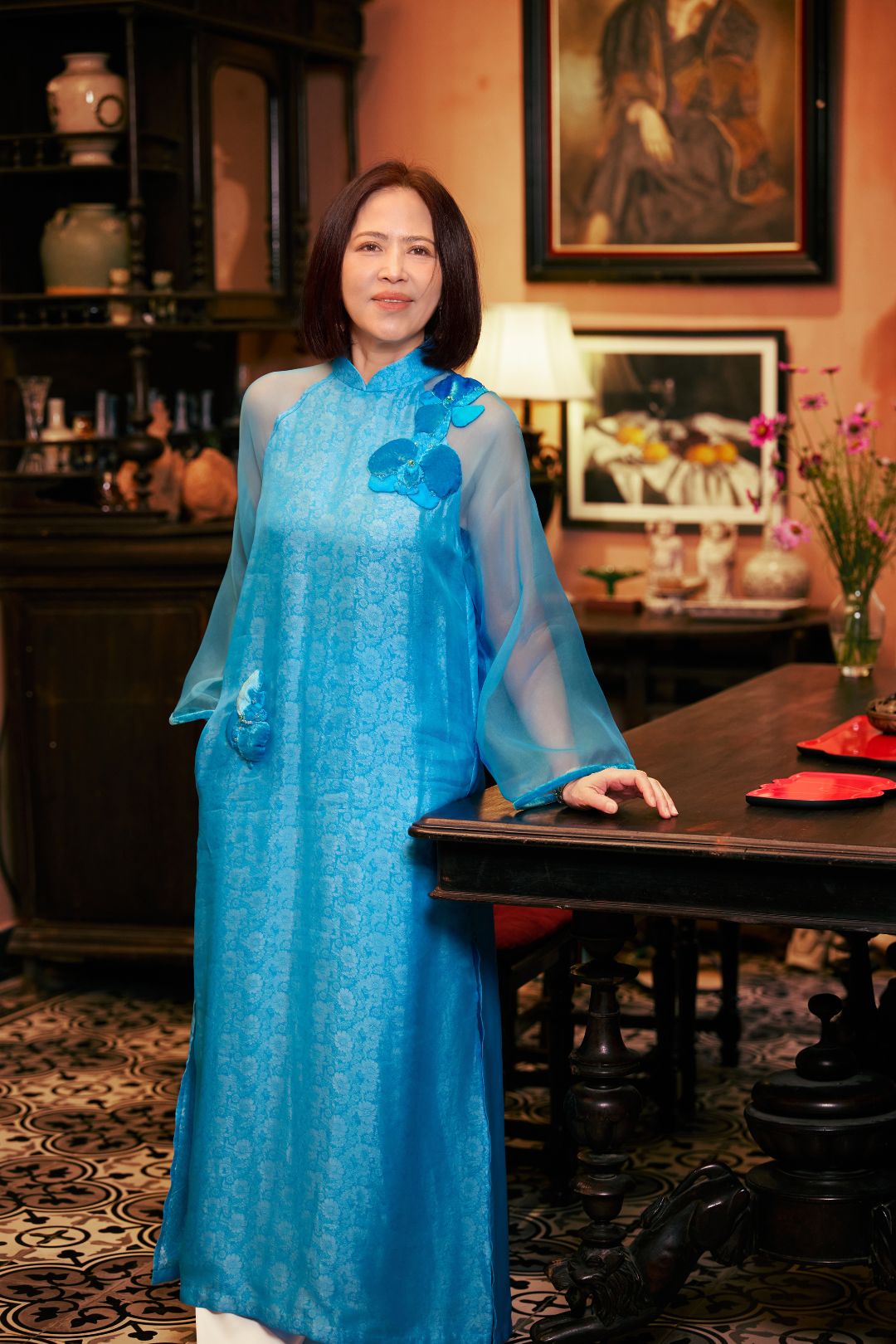 Điểm đặc biệt nhất trong bộ sưu tập này chính là khả năng biến hóa linh hoạt. Một thiết kế áo dài có thể mặc độc lập như một chiếc váy lụa nhẹ nhàng cho những buổi tiệc trà chiều, hoặc kết hợp cùng quần lụa ống rộng để tạo nên diện mạo thanh lịch, nữ tính đặc trưng của phụ nữ Á Đông. Sự đa năng này giúp người mặc tự tin trong mọi hoạt động chúc Tết mà vẫn giữ được cốt cách sang trọng.