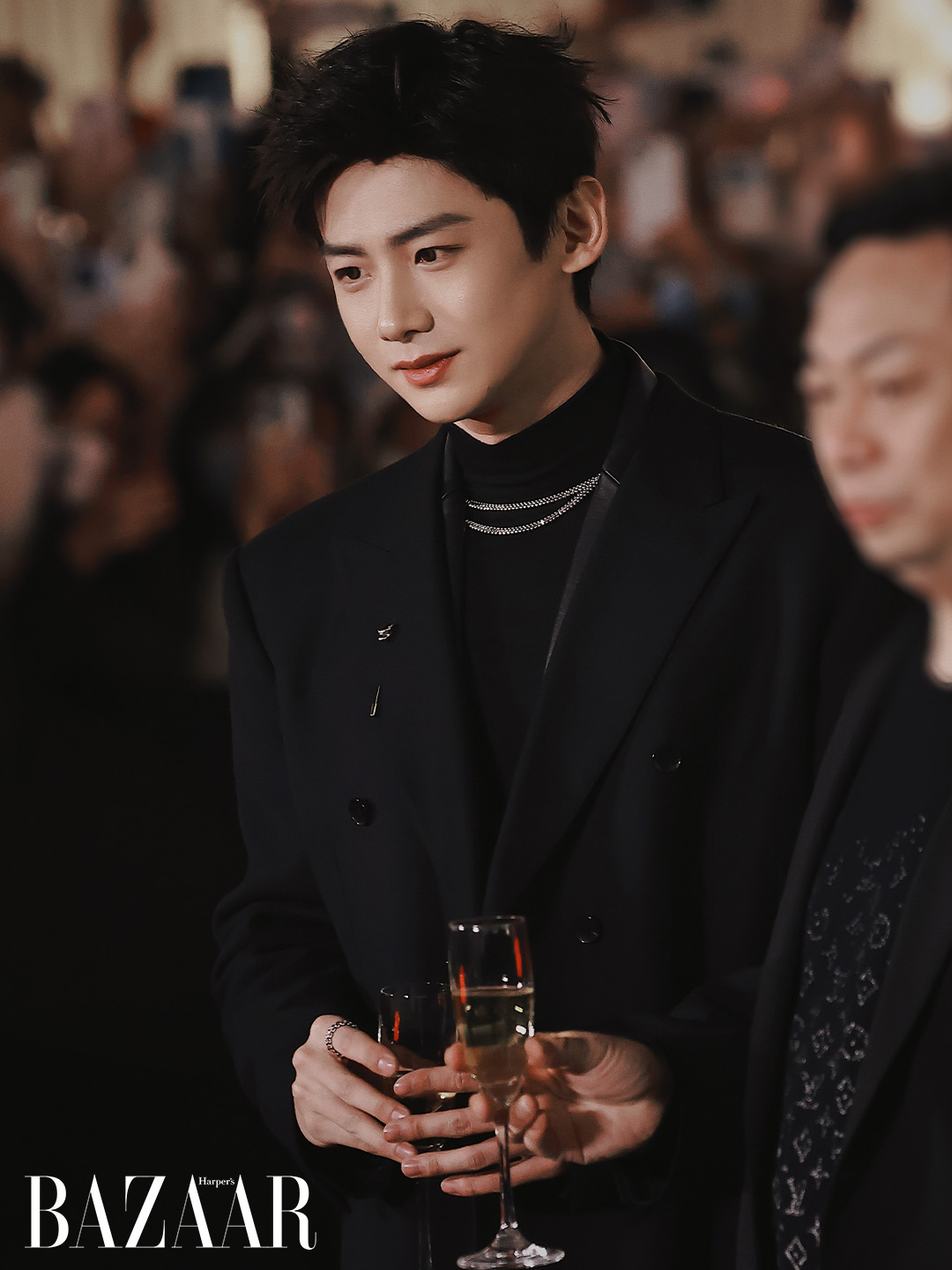 Lần này, Bạch Kính Đình mang vibe Tang Diên xuất hiện trong sự kiện đón đầu mùa lễ hội của Cartier. Trong bộ suit dáng rộng “double-door” tôn bờ vai, chiếc áo da mang sắc thái mạnh mẽ, cổ lọ đen tạo cảm giác trầm ấm và đôi giày da mảnh khảnh hoàn thiện tổng thể, Bạch Kính Đình bước vào không gian lễ hội như một lãng tử trở lại giữa rừng ánh sáng. Đó là phong cách đặc trưng của anh với vai diễn Tang Diên, đủ lạnh lùng để giữ khoảng cách, nhưng cũng đủ ấm áp để khiến người ta muốn đến gần.