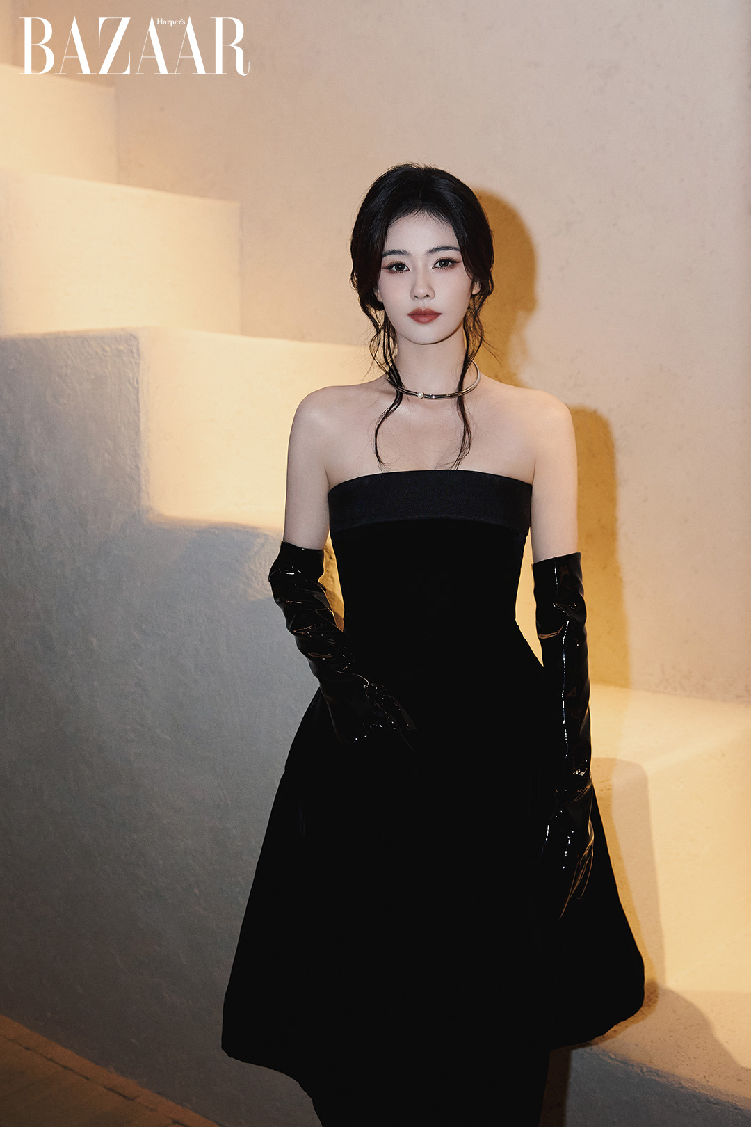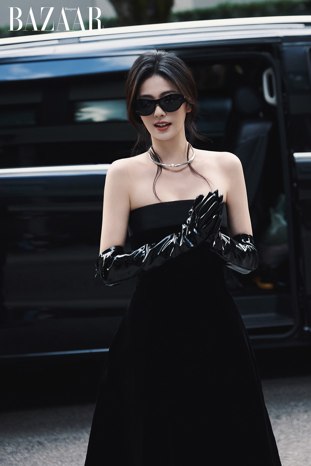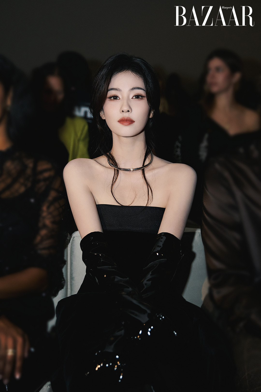 Trái ngược với hình ảnh nhẹ nhàng, ngọt ngào thường ngày, tại Tuần lễ Thời trang Milan Xuân Hè 2026, Bạch Lộc xuất hiện với hình ảnh quyền lực. Cô mặc mẫu váy nhung đen cúp ngực thuộc bộ sưu tập (BST) Thu Đông 2025 của Emporio Armani. Lựa chọn đơn giản ấy được nâng tầm với kính râm to bản, găng tay da bóng và những lọn tóc thả hững hờ bên dưới chiếc vòng cổ.