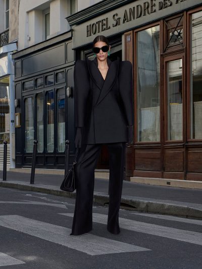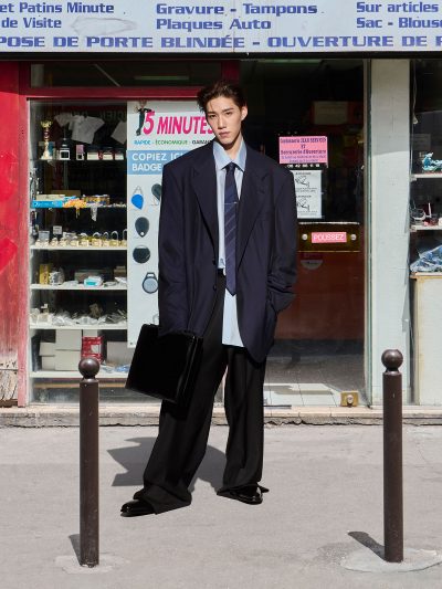 PP Krit, đại sứ Balenciaga, trong một mẫu suit không độn cầu vai, dù có form dáng rất rộng. Ảnh: Balenciaga