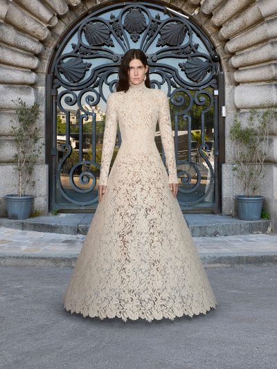 Di sản của Cristóbal Balenciaga cũng vẫn ở đó, thể hiện qua những kiểu dáng váy con nhộng không siết eo và tay dài. Show diễn kết thúc với chiếc váy cưới bằng ren guipuire màu kem, gợi nhớ đến bóng dáng của Balenciaga vào thời thập niên 1950.