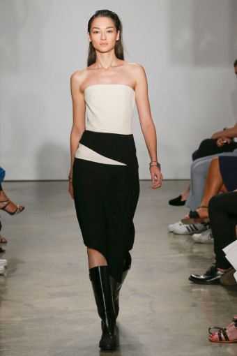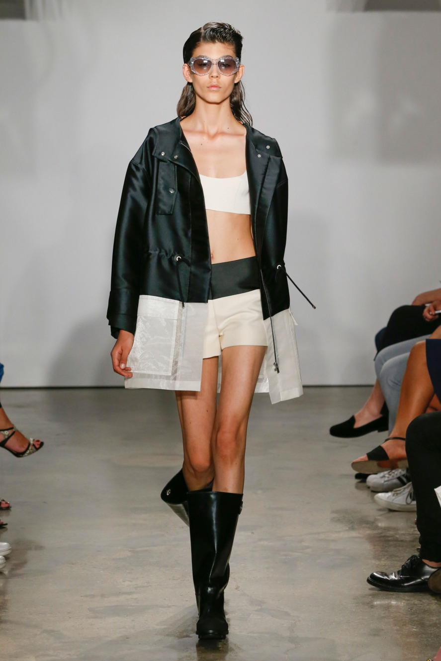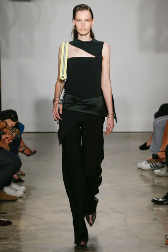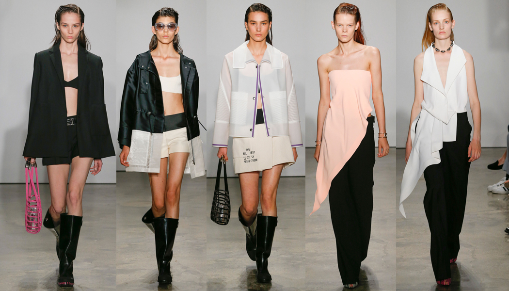 Alexander Wang đã lấy cảm hứng kiến trúc từ góc nhìn 360 độ trong các thiết kế của nhà sáng lập Cristóbal Balenciaga để làm nên bộ sưu tập Resort 2015 lần này. “Tôi muốn thử nghiệm với những kiểu dáng bất đối xứng với nét cắt uốn lượn như dòng chảy”, nhà thiết kế cho biết.