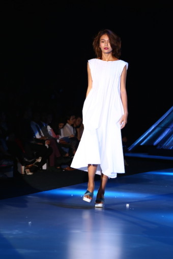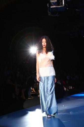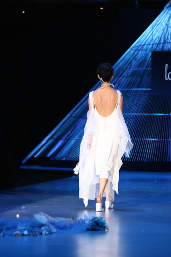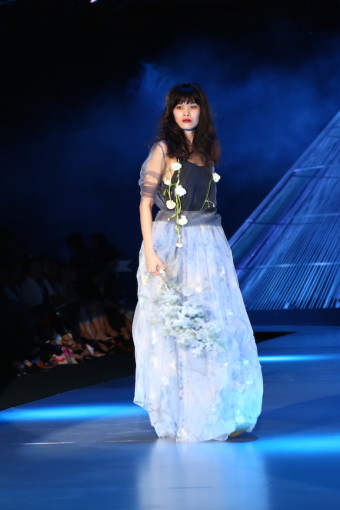 Tuy nhiên nếu xem xét kỹ, kết cấu và chất liệu trang phục bắt nguồn từ những yếu tố rất Việt Nam như chiếc áo yếm, những dải lụa đào quấn quít lấy cơ thể, cho xống áo thêm thướt tha bay bổng theo mỗi chuyện động của người phụ nữ thời xưa, đến những nút thắt – mở ràng rịt của chất liệu mà không thực sự cố định ở bất cứ đâu trên trang phục. Cảm hứng đó lại được nhào trộn có phần quái cảm với niềm đam mê của nhà thiết kế dành cho văn học mà cụ thể là Virginia Woolf – người đàn bà tự tặng hoa cho chính mình, thành một biến thể nàng thơ độc đáo, hiện thân của Li Lam.