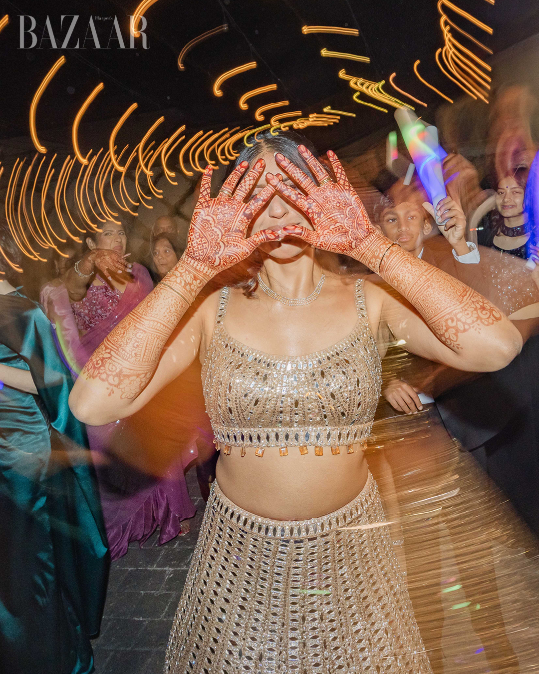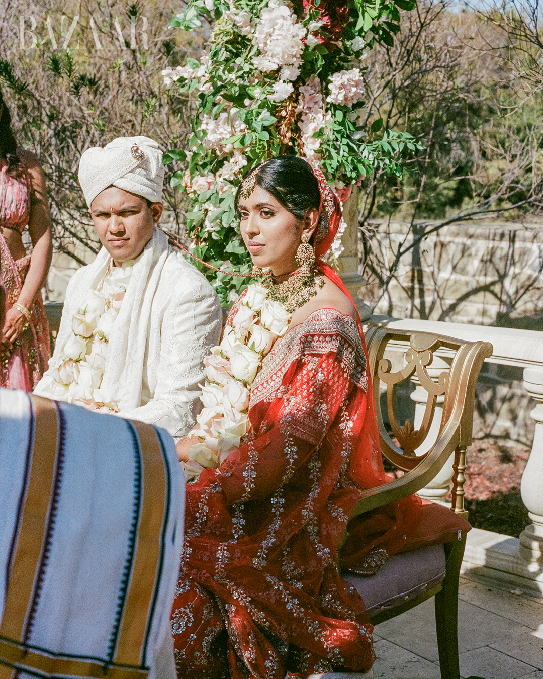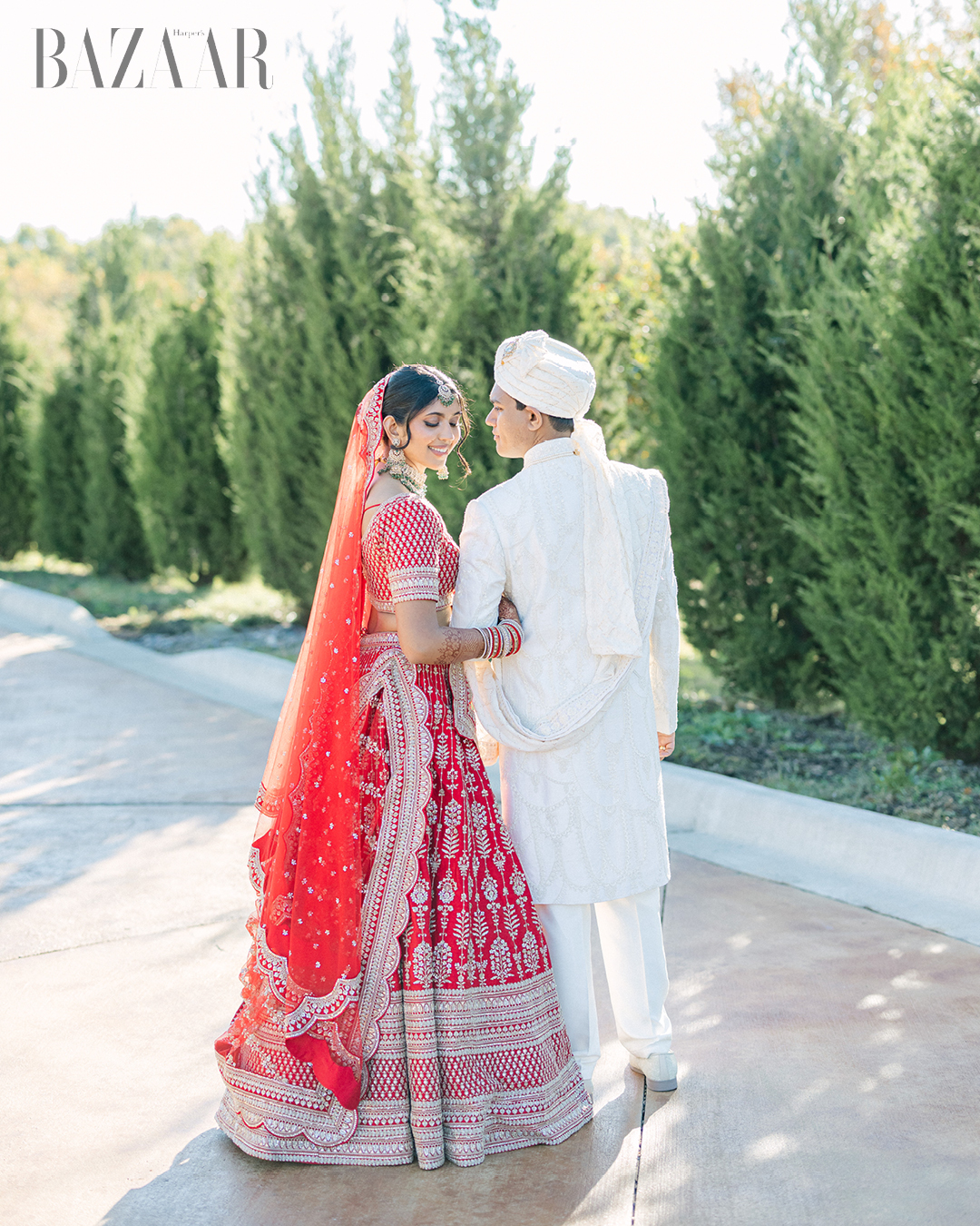 Style choices reinforced that personal-meets-grand scale. The bride wore a striking red Kalighatta lehenga for the ceremony. Another event featured coordinated Mahima Mahajan looks for both partners, and her reception outfit was a standout Seema Gurjal design. Their wedding bands came from Zazzy Box. The groom wore an exclusive Cartier watch, with additional Cartier rings as finishing touches. They also choreographed their own dances, messy, fun, and unmistakably theirs, keeping the weekend warm, human, and lived-in.