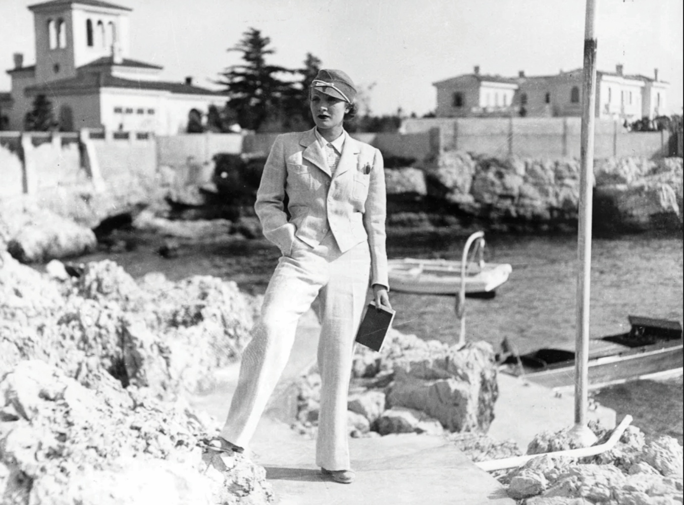 Đại minh tinh, huyền thoại Marlene Dietrich, năm 1932. Bà nổi tiếng với phong cách menswear bao gồm quần tây, mũ và complet. Dietrich biến các trang phục nam giới thành thời trang dành cho phụ nữ sau khi chiếc mũ đội đầu điển hình của nam giới luôn xuất hiện cùng bà.
