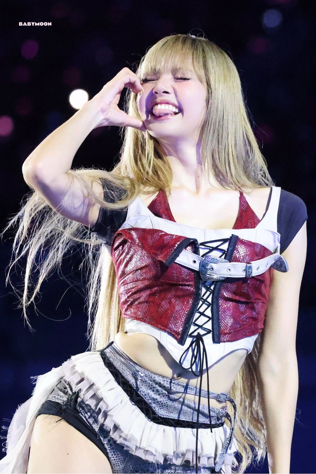 Những phụ nữ miền viễn Tây trong lịch sử sử dụng corset, một lớp đồ lót dùng để siết eo, nâng ngực không thể thiếu dưới những lớp trang phục nữ giới thời bấy giờ. Trên trang phục biểu diễn DEADLINE World Tour, Lisa lấy corset đan dây làm áo quây, layer cùng croptop. Cô còn sáng tạo khi lấy chiếc thắt lưng trong các bản phối cao bồi để làm điểm trang trí ngực áo.