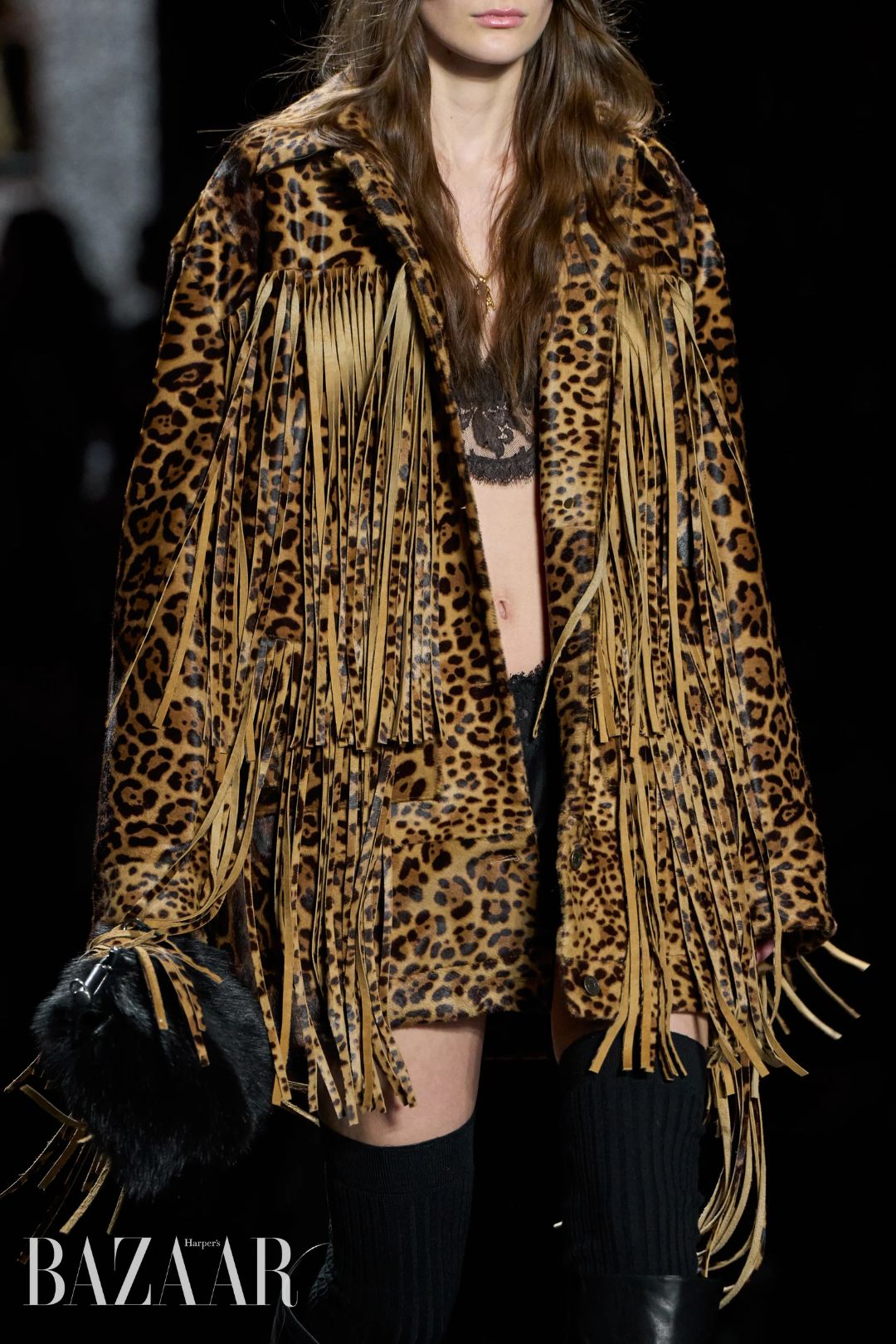 Phần tua rua thường xuất hiện trên những chiếc áo khoác da lộn hay găng tay theo kiểu ăn vận miền viễn Tây trở thành điểm nhấn cho phần ngực của chiếc áo hai dây, là một lựa chọn phù hợp hơn cho những ai mong muốn theo đuổi Westerncore ngay hè này nhưng không sẵn sàng cho những chiếc áo khoác dày.