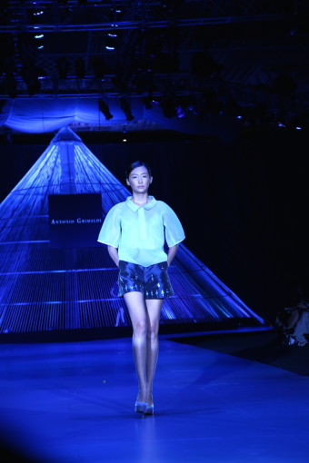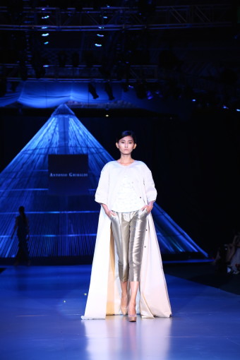 Tại ngày thứ 4 diễn ra Tuần lễ thời trang quốc tế Việt Nam, Antonio Grimaldi là nhà thiết kế cuối cùng trình làng bộ sưu tập thời trang ứng dụng của mình tới giới mộ điệu.