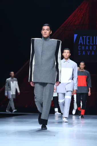 Lucie Lee, học viên gốc Hàn mở màn cho buổi trình diễn của Atelier Chardon Savard Paris mang đến cho giới mộ điệu bộ sưu tập thời trang ứng dụng dành cho nam. Với các đường cắt may tinh tế, trang phục ngoại cỡ theo trào lưu tối giản và kỹ thuật tạo hình được Lucie biến tấu khéo léo, tạo nên vẻ phá cách, mới lạ đúng với tên gọi Think out of the box của bộ sưu tập cho những thiết kế cổ điển dành cho phái mạnh.
