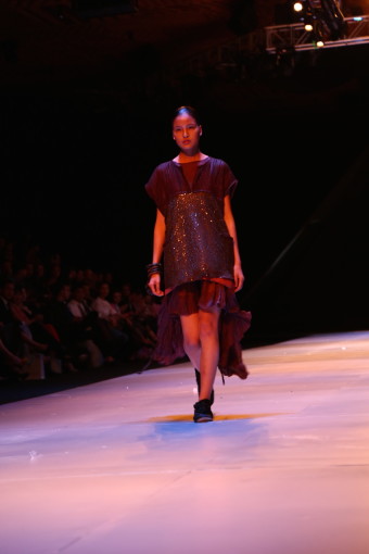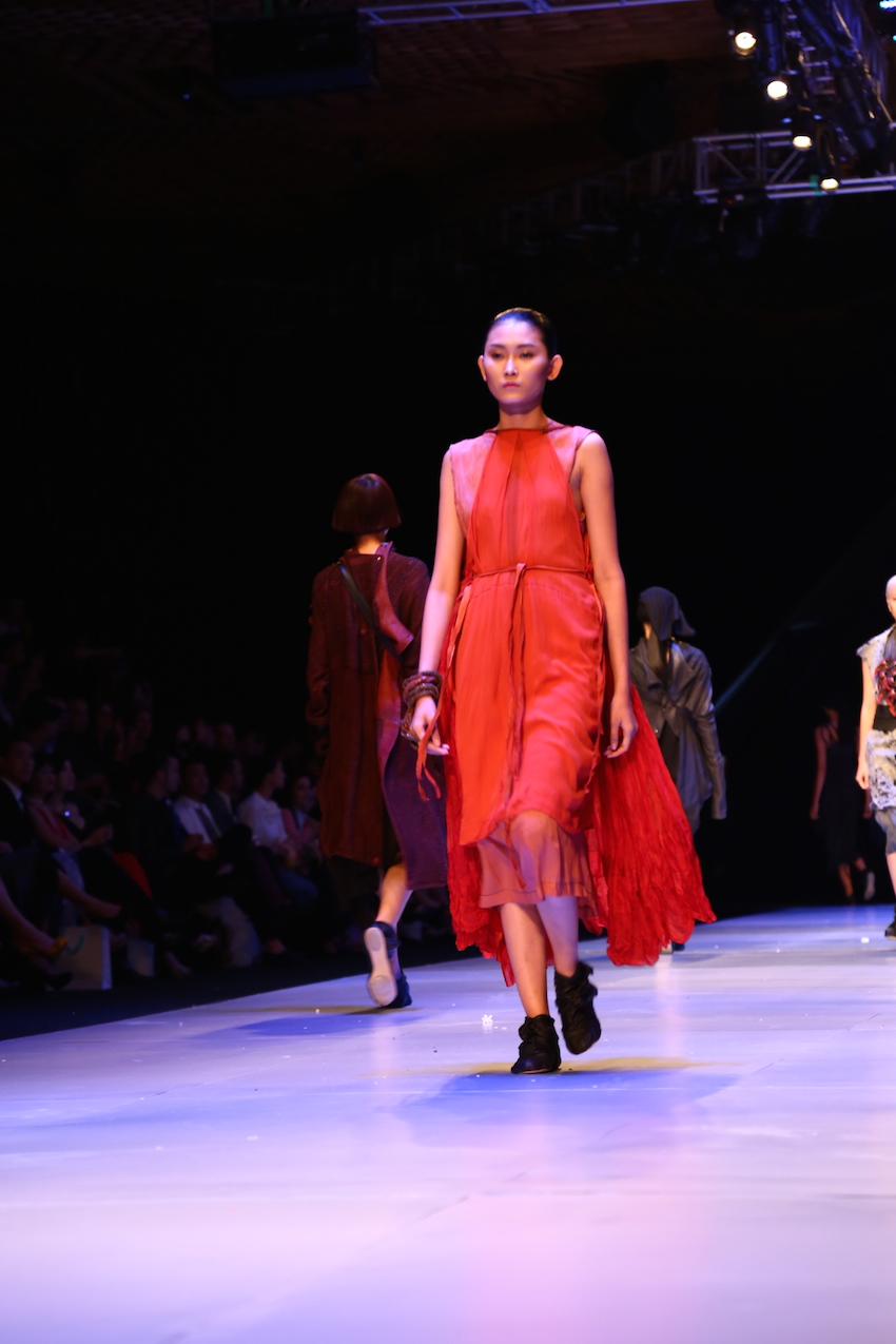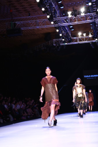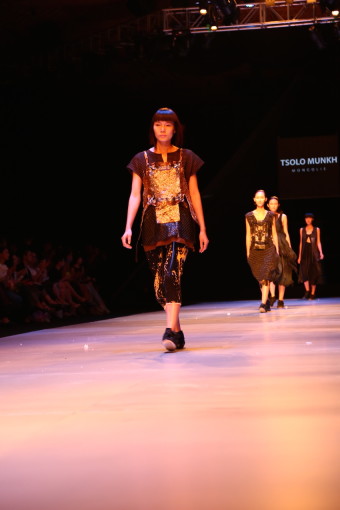 Không như các bộ sưu tập khác, buổi diễn của nữ tạo mốt gốc Mông Cổ bắt đầu với tiết tấu khá nhanh. Thay vì xuất hiện dàn trải, 19 người mẫu với các thiết kế cùng nhau xuất hiện chóng vánh trên sàn diễn, giúp người xem gợi nhớ đến những tiếng vó ngựa dồn dập, mãnh liệt mà phóng khoáng của quê hương cô.
