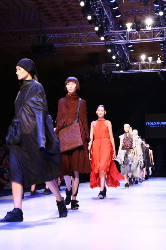 Xuyên suốt bộ sưu tập, Tsolo Munkh chỉ sử dụng những gam màu trầm như đỏ sậm, đen, nâu… cùng một thiết kế đỏ duy nhất trình diễn ở giữa bộ sưu tập làm điểm nhấn. Những sáng tạo của chị được ứng dụng trên nền chất liệu vải thô, thuộc da, thêu hay các đường cắt cúp ngẫu hứng đã tạo nên vẻ phóng khoáng đậm chất du mục boho cho toàn bộ sưu tập.
