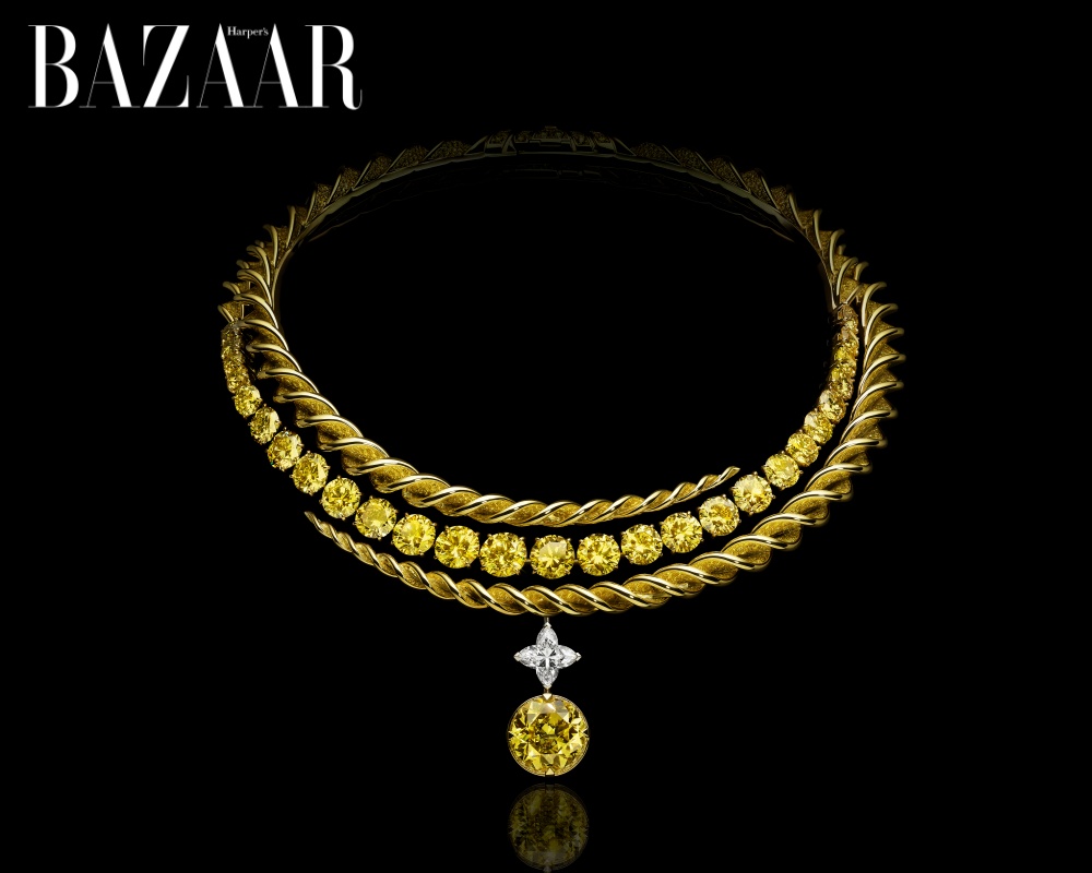 Khép lại bộ sưu tập đỉnh sức Louis Vuitton Virtuosity là vòng Eternal Sun, với sắc vàng đồng nhất của vàng vàng và kim cương vàng. Thiết kế đính 27 viên kim cương vàng tròn tổng trọng lượng 46.13 carat mà Louis Vuitton phải tốn đến bảy năm để tuyển chọn. Các viên đá quý dẫn lối đến viên kim cương vàng tròn duy nhất nặng 14 carat, đi kèm viên kim cương giác cắt LV Monogram Star độc quyền, nặng 3.88 carat. Mô-típ dây thừng đặc trưng một lần nữa được tái định nghĩa bằng phương thức phủ đá pave. Thiết kế có thể biến hóa theo sáu cách đeo khác nhau – bao gồm cả một chiếc nhẫn. Viên kim cương vàng trung tâm có thể tháo rời để đeo như nhẫn trên ngón tay.