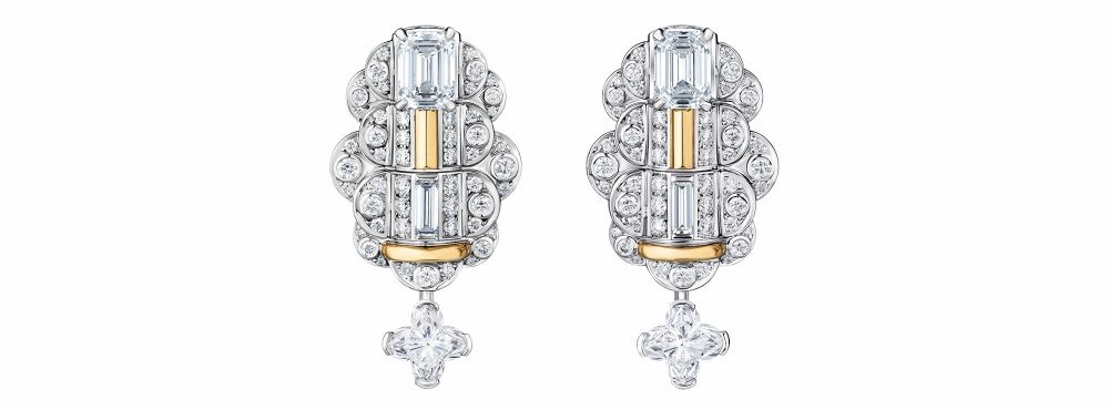 Hoa tai Maestria, tâm điểm là hai viên kim cương giác cắt LV Monogram Star độc quyền.