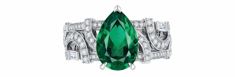 Nhẫn Apogée, tâm điểm là viên ngọc lục bảo nặng 4.004 carat và kim cương.