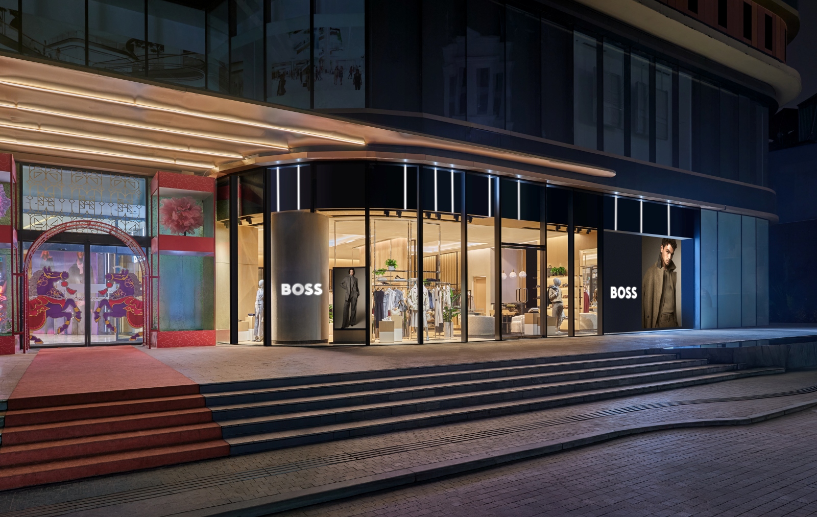 Mặt tiền cửa hàng BOSS tại TTTM Hanoi Centre ở Hà Nội, cửa hàng lớn nhất của thương hiệu tại Việt Nam. Ảnh: BOSS