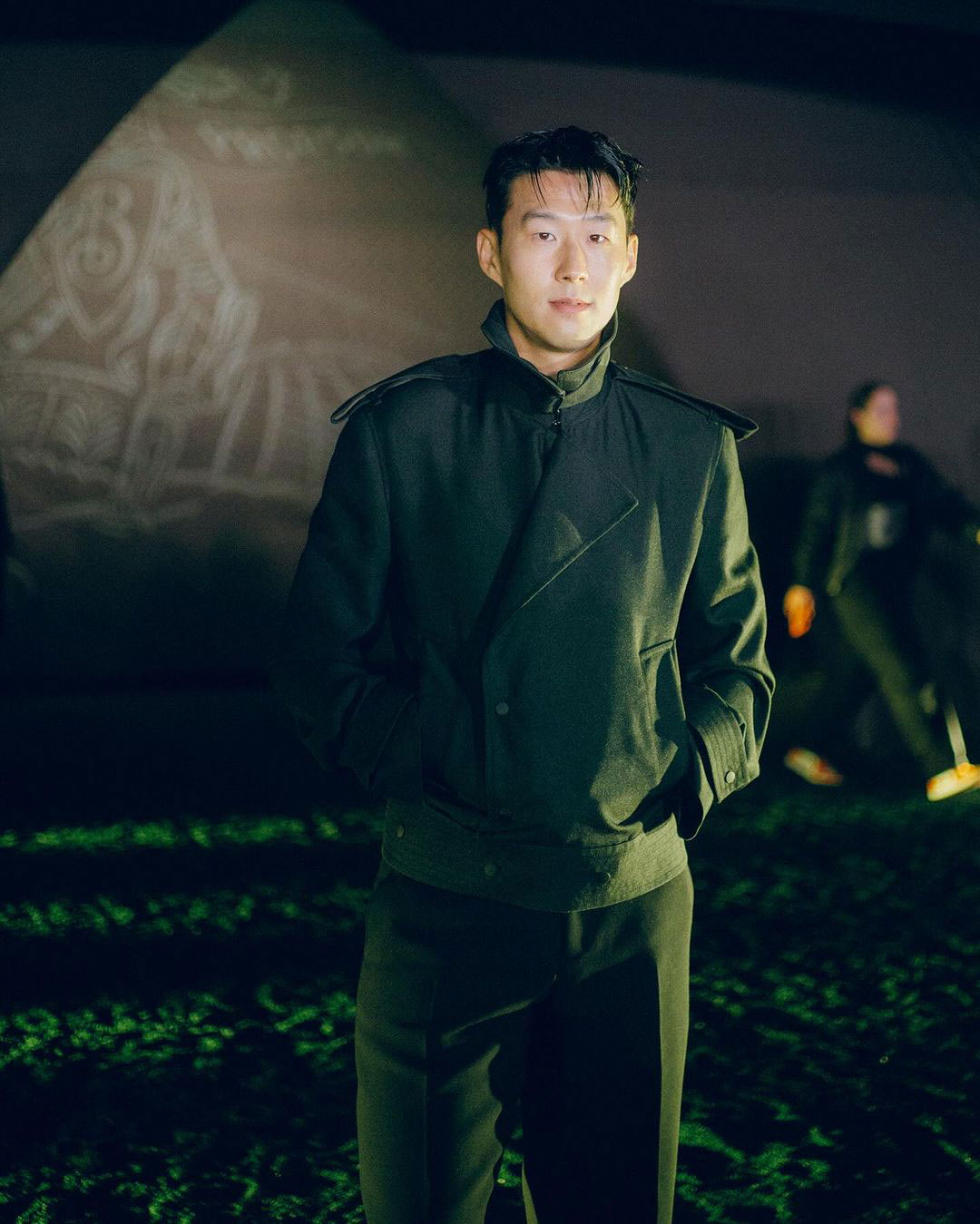 Là Đại sứ toàn cầu của Burberry, nam cầu thủ đắt giá nhất Châu Á Son Heung Min là nhân vật không thể thiếu trên hàng ghế front row của nhà mốt Anh Quốc. Chọn áo khoác ấm áp phối cùng quần đồng bộ màu đen trong cái lạnh cuối mùa đông ở Anh, Son Heung Min gây ấn tượng với vẻ đơn giản nhưng vẫn đậm chất phong trần, lịch lãm.