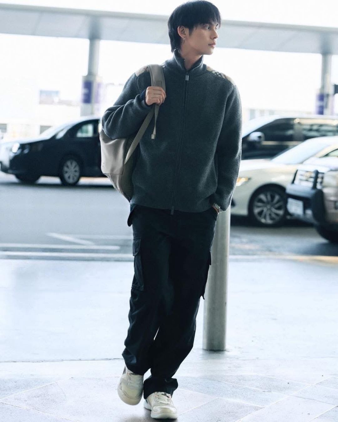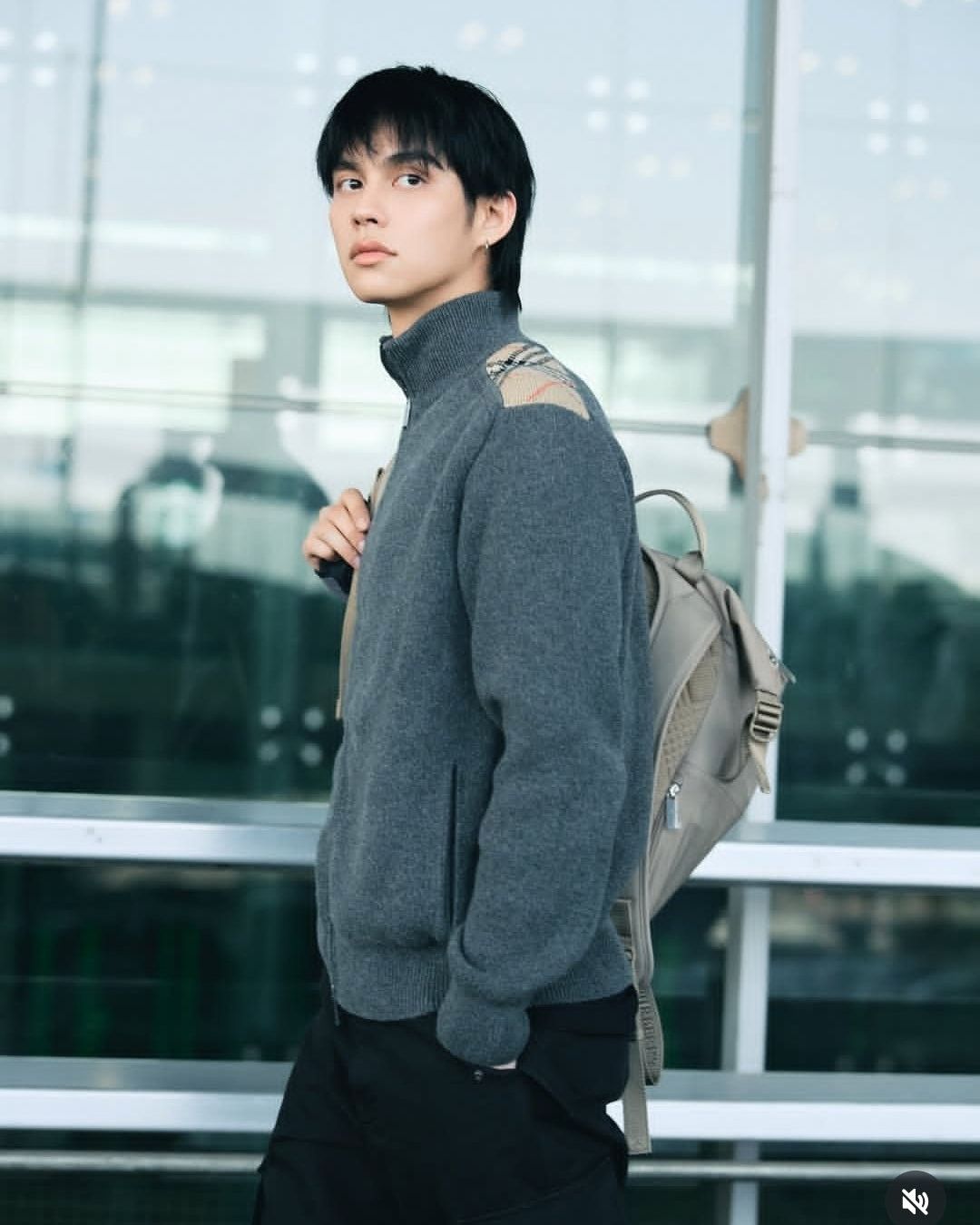 Điểm cộng lớn nhất chính là mái tóc thẳng tự nhiên, được cắt tỉa gọn gàng, khác hẳn kiểu tóc rũ che khuất mặt từng khiến anh trông “dữ tợn” và già dặn hồi tháng 1/2026. Kiểu tóc mới mang lại vẻ ngoài thanh xuân cho Bright, gợi nhắc về giai đoạn anh còn đóng phim Still 2gether. Chiếc balo của nhà mốt Anh Quốc là điểm nhấn, càng tạo thêm sự năng động cho Bright, khẳng định vị thế đại sứ ngay từ những bước chân đầu tiên tại phi trường.