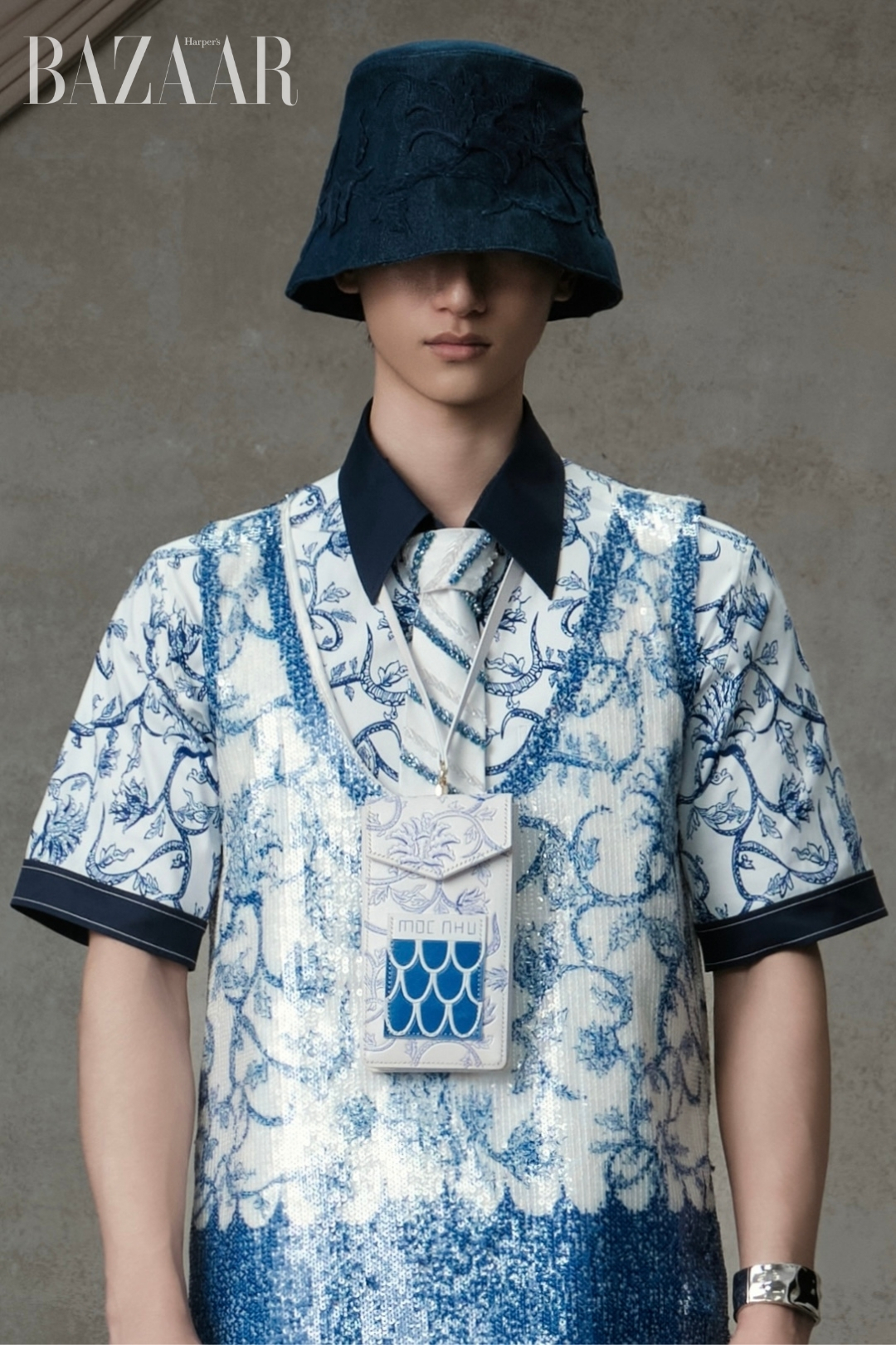 Ngoài trang phục, NTK Mộc Nhu cũng đặt rất nhiều tâm huyết cho những phụ kiện đi kèm như nón, túi và giày. Bạn sẽ tìm thấy trong Proudly Vietnam 01 hình dáng mũ pillbox sang trọng, phản ánh xu hướng phụ kiện nổi bật của năm 2025, bên cạnh beret, bucket pha phối kiểu dáng phương Tây với vẻ đẹp Á Đông trong màu sắc, họa tiết.