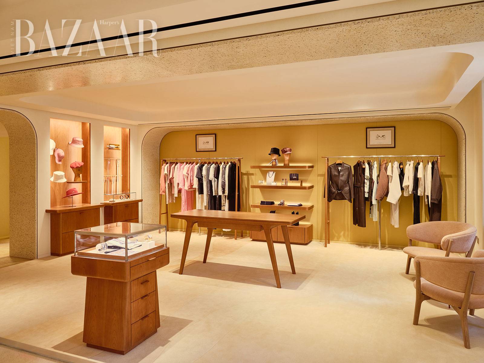 Sâu bên trong, các bộ sưu tập đồ da và đồ cưỡi ngựa được đặt trong một góc nhỏ ấm cúng, kết nối nhịp nhàng với không gian ngành hàng đồ không gian sống.