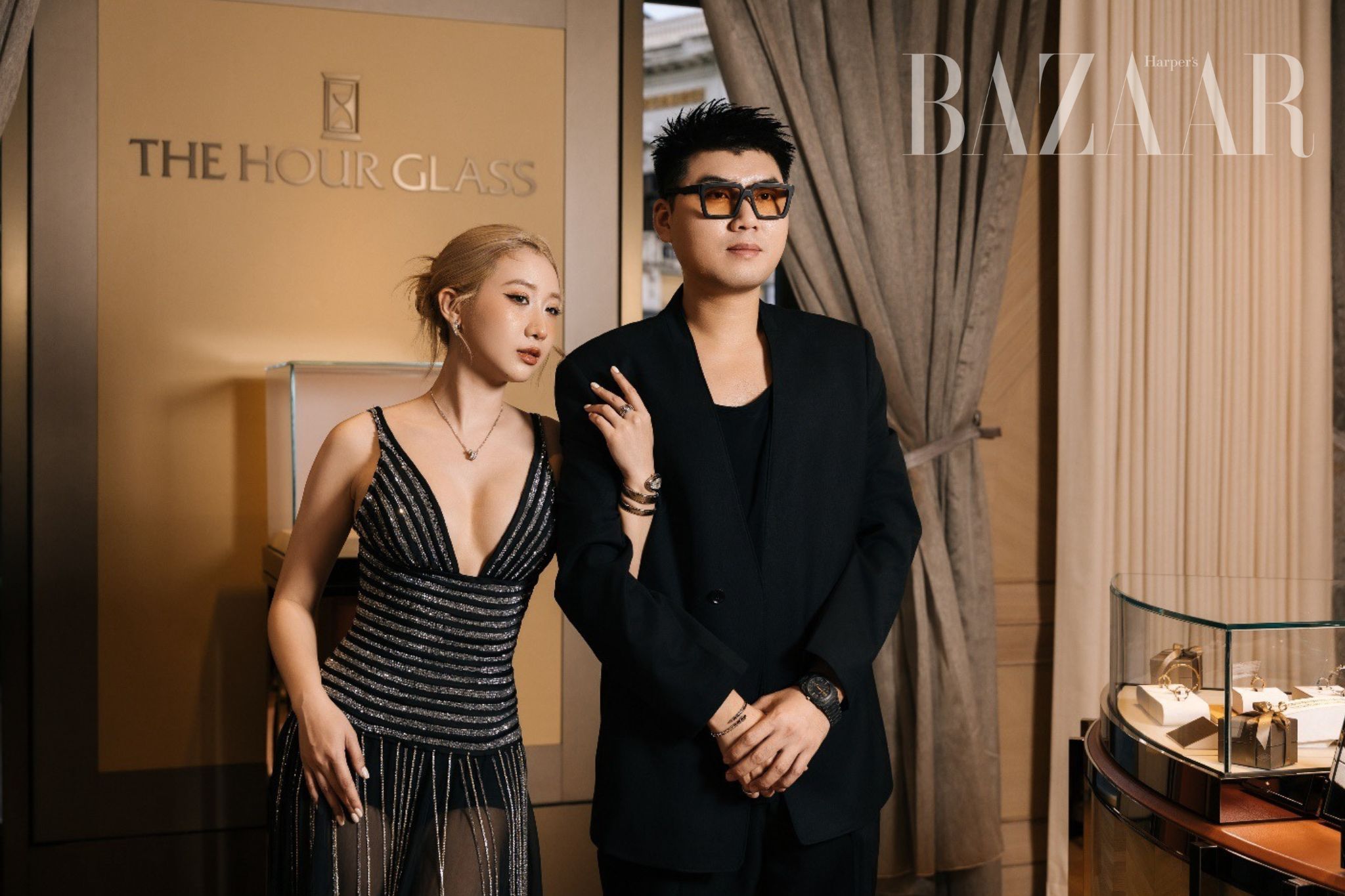 Kiều Ly cùng bộ trang sức Serpenti Viper vàng trắng 18K nạm kim cương Pavé, kết hợp đồng hồ Serpenti Tubogas hai vòng dây thép cùng mặt số trắng, thể hiện phong cách hiện đại, thời thượng. Đạo diễn Đức Anh xuất hiện tinh giản nhưng đầy cá tính với đồng hồ Octo Finissimo bằng carbon và vàng 18K, phối cùng vòng tay và nhẫn Serpenti, một tổng thể mạnh mẽ, thanh lịch và đầy sáng tạo.
