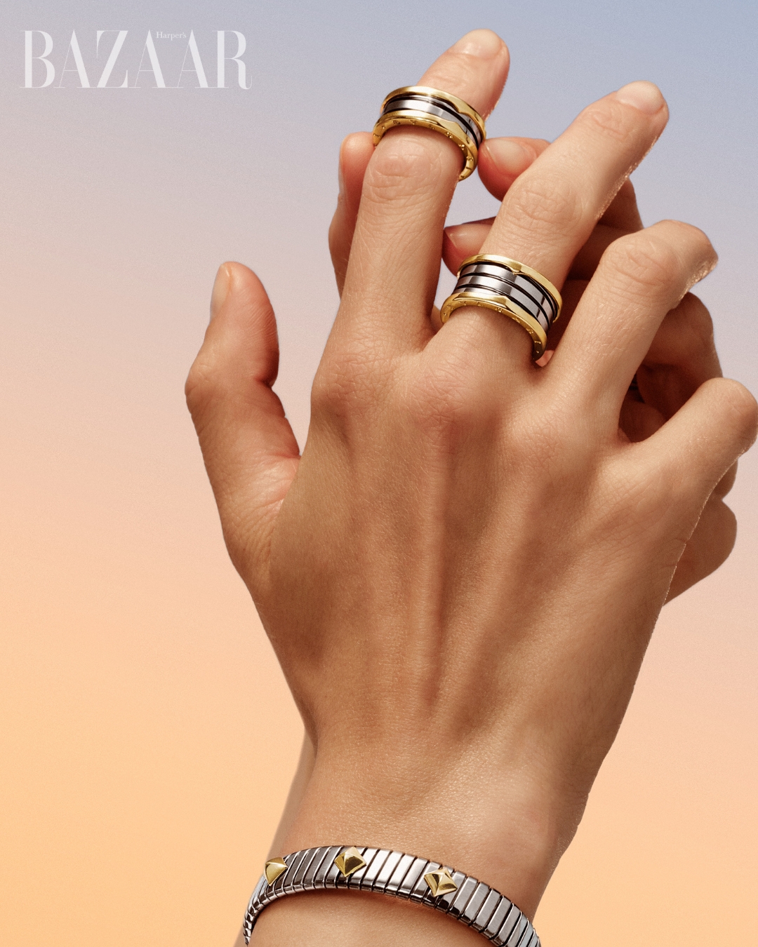 B.zero1 giới thiệu hai mẫu nhẫn mới, phiên bản bốn vòng và hai vòng, được chế tác từ thép với phần viền ngoài bằng vàng vàng. Một lần nữa, không gian nhỏ gọn của chiếc nhẫn B.zero1 trở thành “mảnh đất” cho những cuộc thử nghiệm: dải xoắn ốc biểu tượng khẳng định bản sắc thông qua sự tương phản, tái hiện ý niệm về chuyển động vĩnh cửu trong một hình khối điêu khắc.