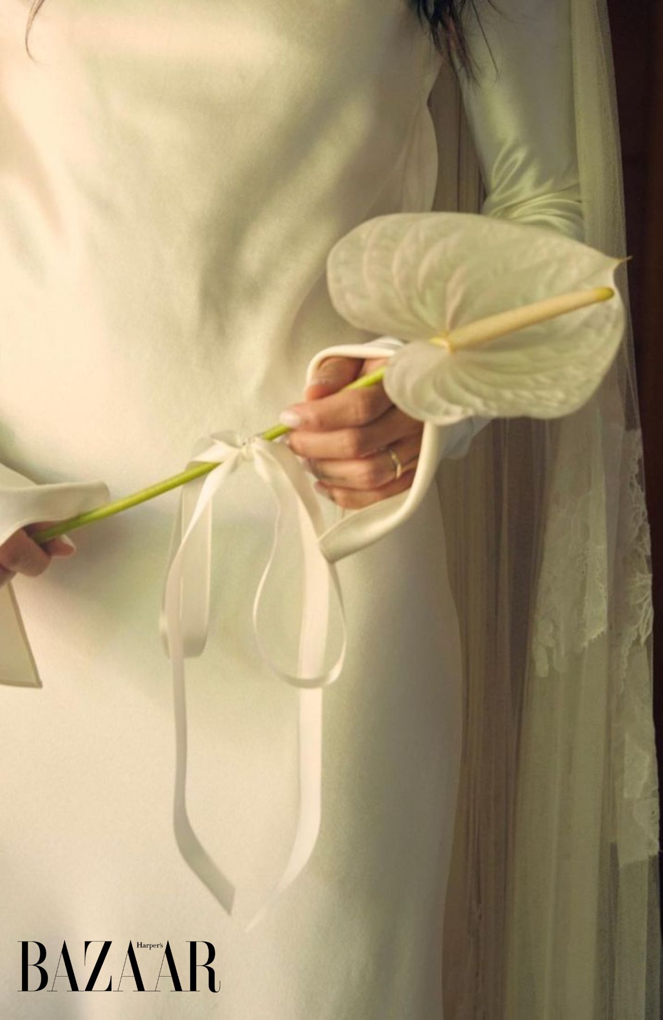 - Kết hợp dây ngọc trai và hoa Calla Lily. Ảnh: CoZee