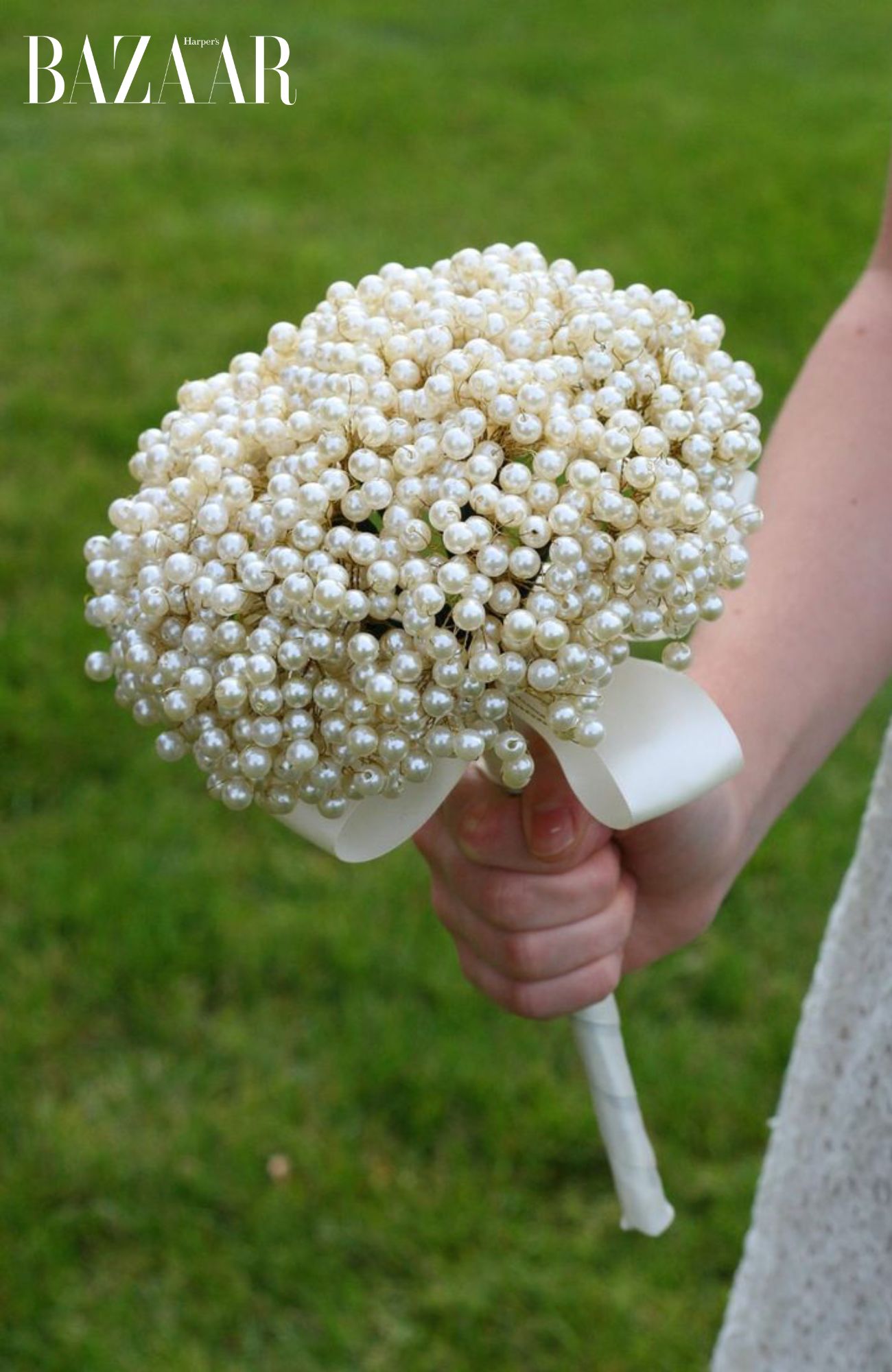 - Bó hoa cưới làm từ hạt cườm ngọc trai. Ảnh: Esty