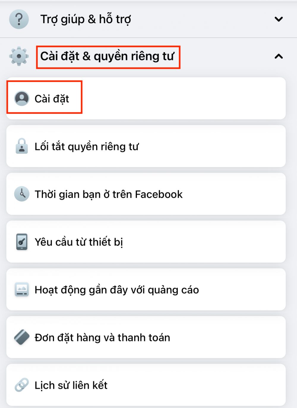 • Tại giao diện Facebook trên điện thoại iPhone, bạn bấm vào “menu”, chọn mục “cài đặt và quyền riêng tư” rồi tiếp tục bấm chọn “cài đặt”.