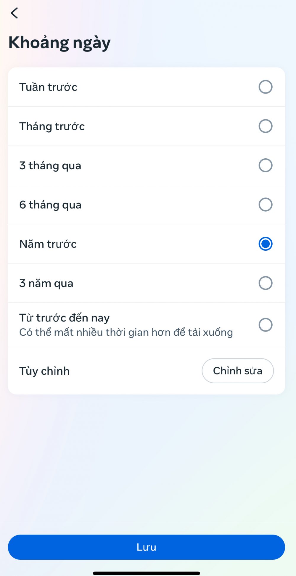 • Bạn chọn khoảng ngày chứa tin nhắn cần phục hồi rồi nhấn “gửi yêu cầu”. Sau đó bạn chỉ cần chờ cho đến khi Facebook tải xong file.