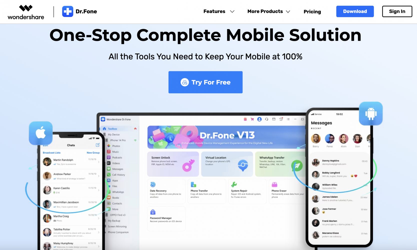 Thêm một cách khôi phục tin nhắn đã xóa vĩnh viễn trên Messenger là hãy sử dụng phần mềm Wondershare Dr.Fone. Cách phục hồi này dễ hơn rất nhiều so với thực hiện sao lưu trên điện thoại. Bạn cần làm theo các bước sau: