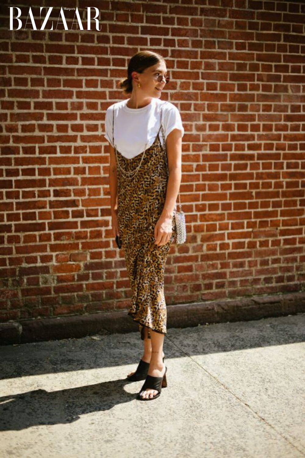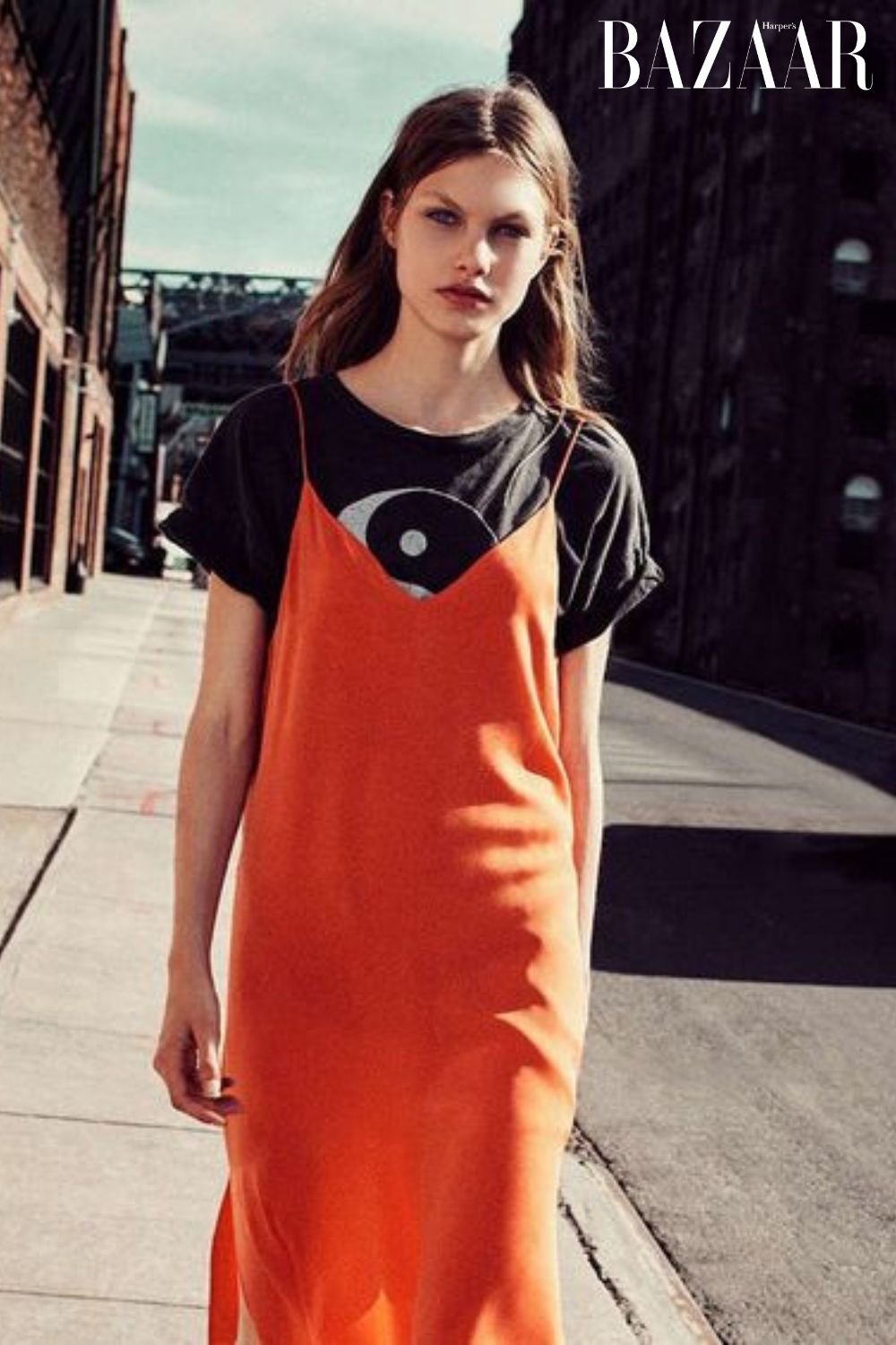 Gợi ý cho bạn: Hãy thử slip dress-over-shirt, cách mặc đầm slip dress bên ngoài áo phông.
