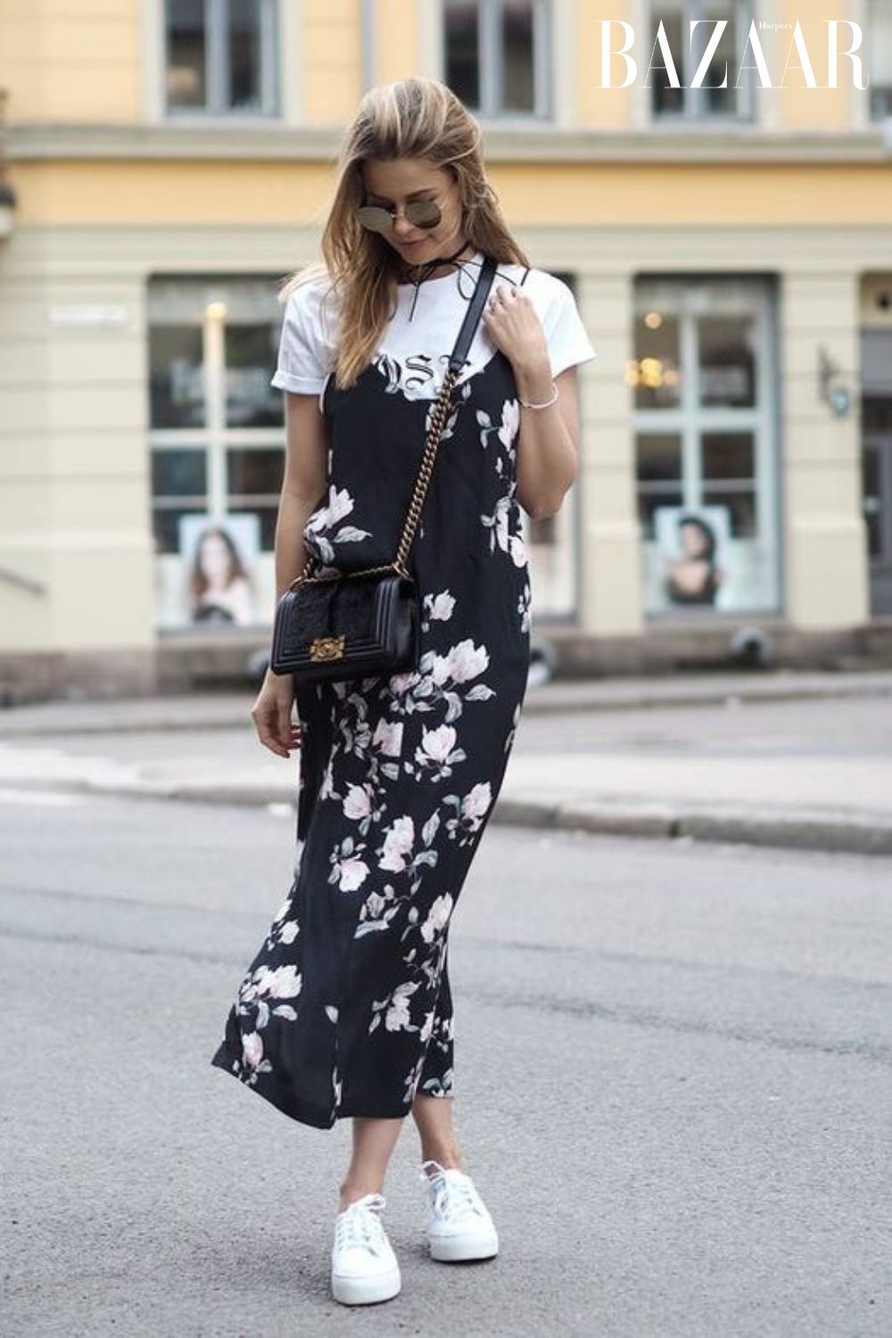 Cách mặc váy đầm slip dress cùng áo thun sao cho “chanh xả”