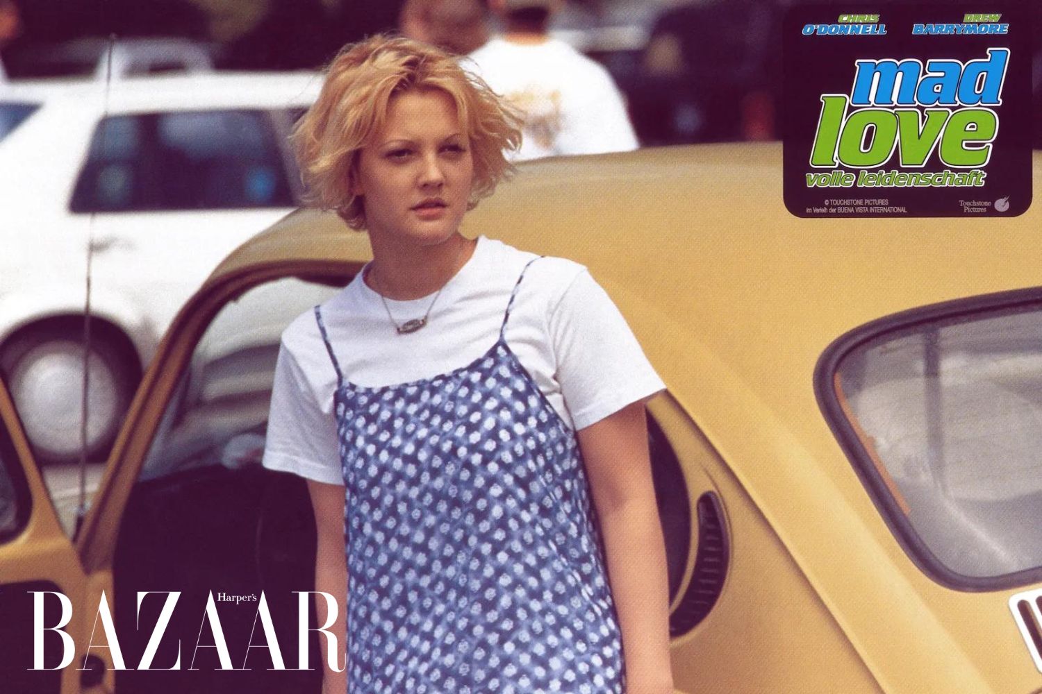 Mặc áo thun bên dưới đầm slip dress không phải điều gì quá mới. Bằng chứng là trong bộ phim Mad Love (1995), nhân vật do Drew Barrymore thủ vai đã mặc trang phục như vậy.