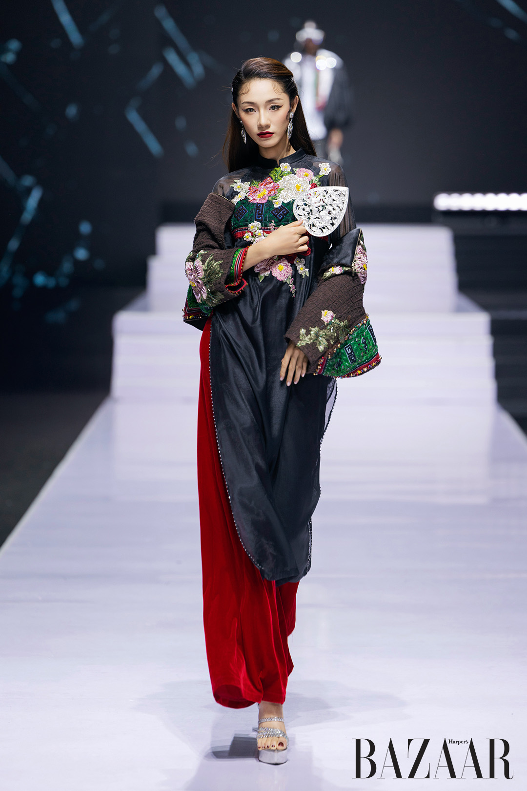 Từng bước đi của Bùi Quỳnh Hoa thể hiện sự cân bằng giữa bí ẩn và cá tính, vừa dữ dội vừa tinh tế, khép lại BST bằng một hình ảnh mạnh mẽ, đầy bản sắc