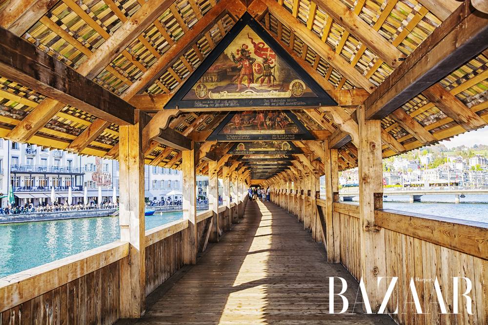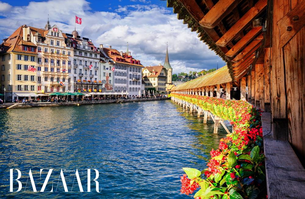 Một trong những địa điểm nên ghé thăm ở Thụy Sĩ là thành phố Lucerne với cây cầu gỗ Chapel lâu năm. Ảnh: Shutterstock