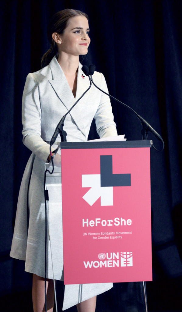 Cuối tháng 9–2014, Emma đã có bài phát biểu ấn tượng và thuyết phục về quyền bình đẳng giới tại trụ sở Liên Hiệp Quốc. Sức lan tỏa của những luận điểm rõ ràng và đúng đắn của Emma đã và đang tác động đến nhiều người nổi tiếng ủng hộ cuộc đấu tranh chống bất bình đẳng giới tính. Tổng thư ký Liên Hiệp Quốc, ông Ban Ki-Moon đã đưa ra lời khen với ngôi sao trẻ tuổi: “Cô ấy đang tạo ra những điều kỳ diệu. Tôi mong rằng cô ấy sẽ dùng phép thuật của mình để kết thúc tình trạng bạo hành phụ nữ đang diễn ra ở nhiều nơi”.